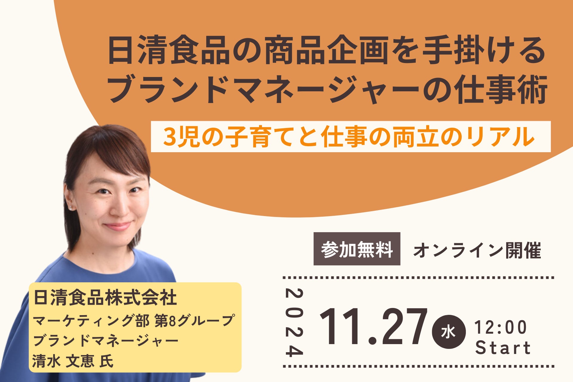 【無料ウェビナー開催!】日清食品の商品企画を手掛けるブランドマネージャーの仕事術~3児の子育てと仕事の両立のリアル~ ❘ セミナーインフォ