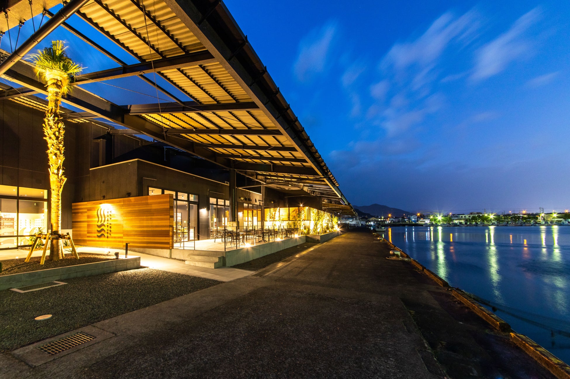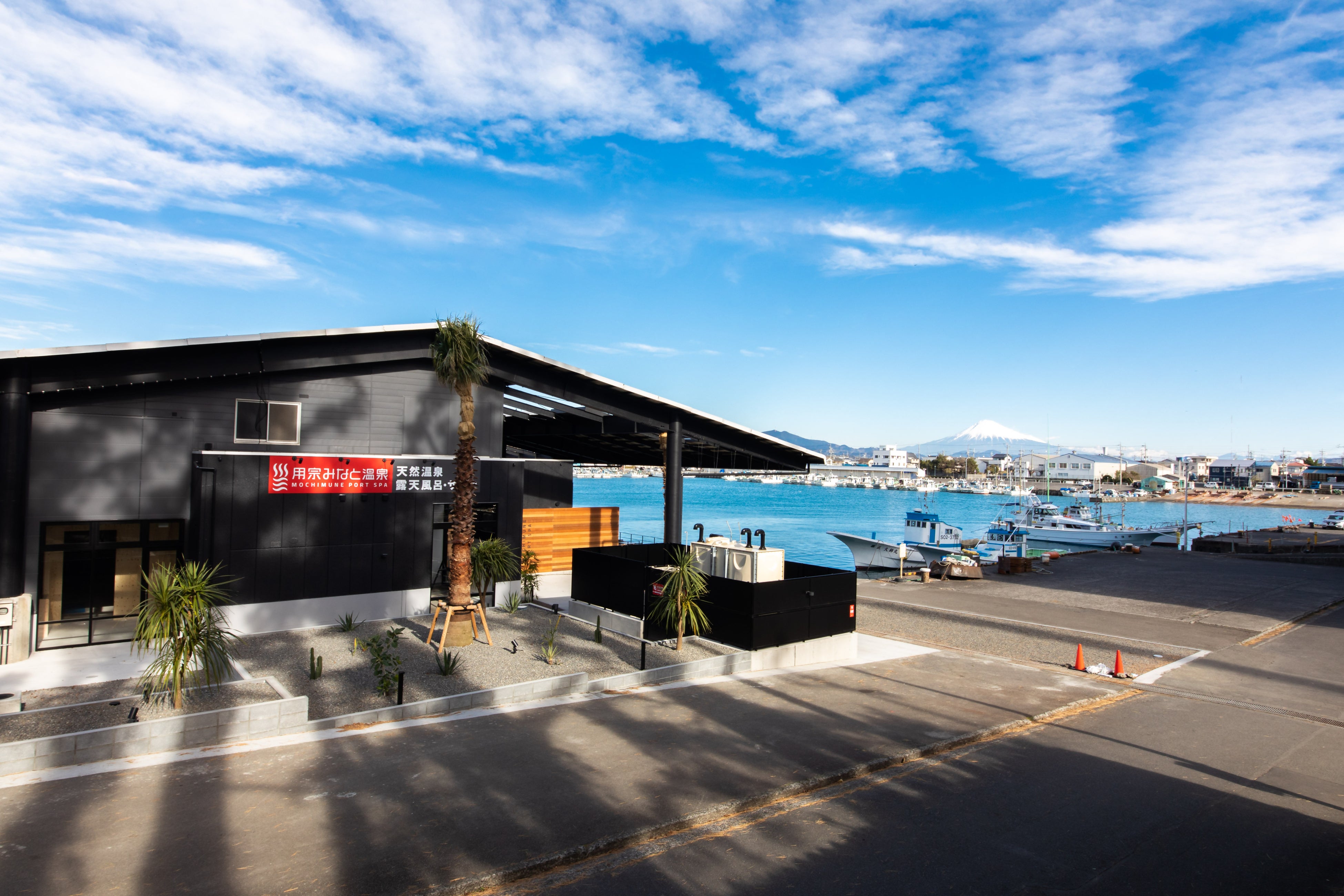 用宗漁港にある、「港町の日常」を切り取ったような、のどかな風景を温泉とともに楽しめる天然温泉。かつてマグロの加工場だった建物をリノベーションし、風情ある漁港の景色と良質な天然温泉を満喫できます。