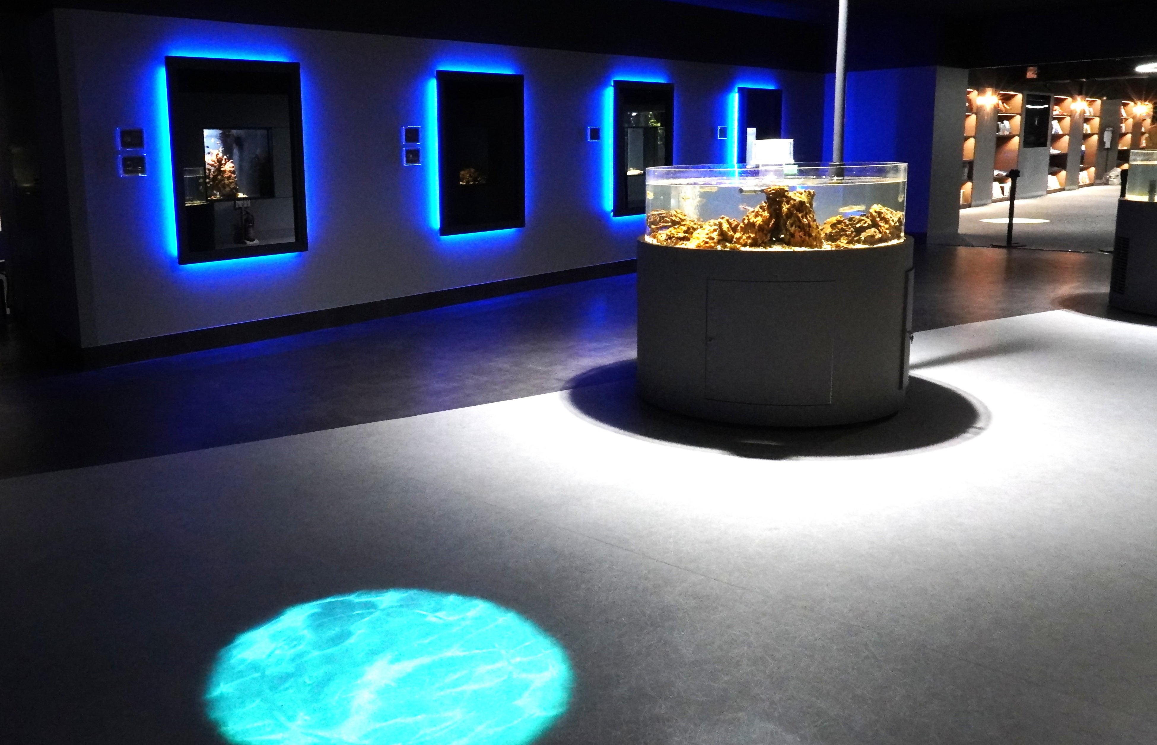 静岡駅前の松坂屋静岡店に2022年にオープンした、お買い物のついでに立ち寄れる“街なかの小さな水族館”。松坂屋の7階というアクセスの良さに加え、最新のLEDライトを使った幻想的な展示が魅力で、子どもから大人まで幅広い世代が楽しめるスポットです。
