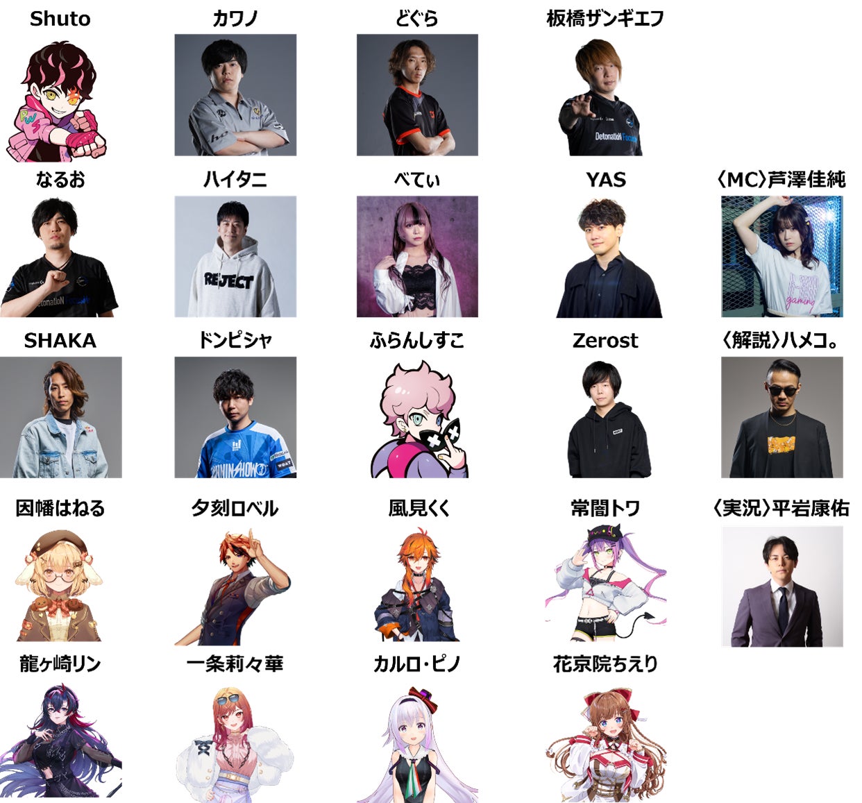 出演者:Shuto、カワノ、どぐら、板橋ザンギエフ、なるお、ハイタニ、べてぃ、YAS、SHAKA、ドンピシャ、ふらんしすこ、Zerost、因幡はねる、夕刻ロベル、風見くく、常闇トワ、龍ヶ崎リン、一条莉々華、カルロ・ピノ、花京院ちえり、〈MC〉芦澤佳純、〈解説〉ハメコ。、〈実況〉平岩康佑