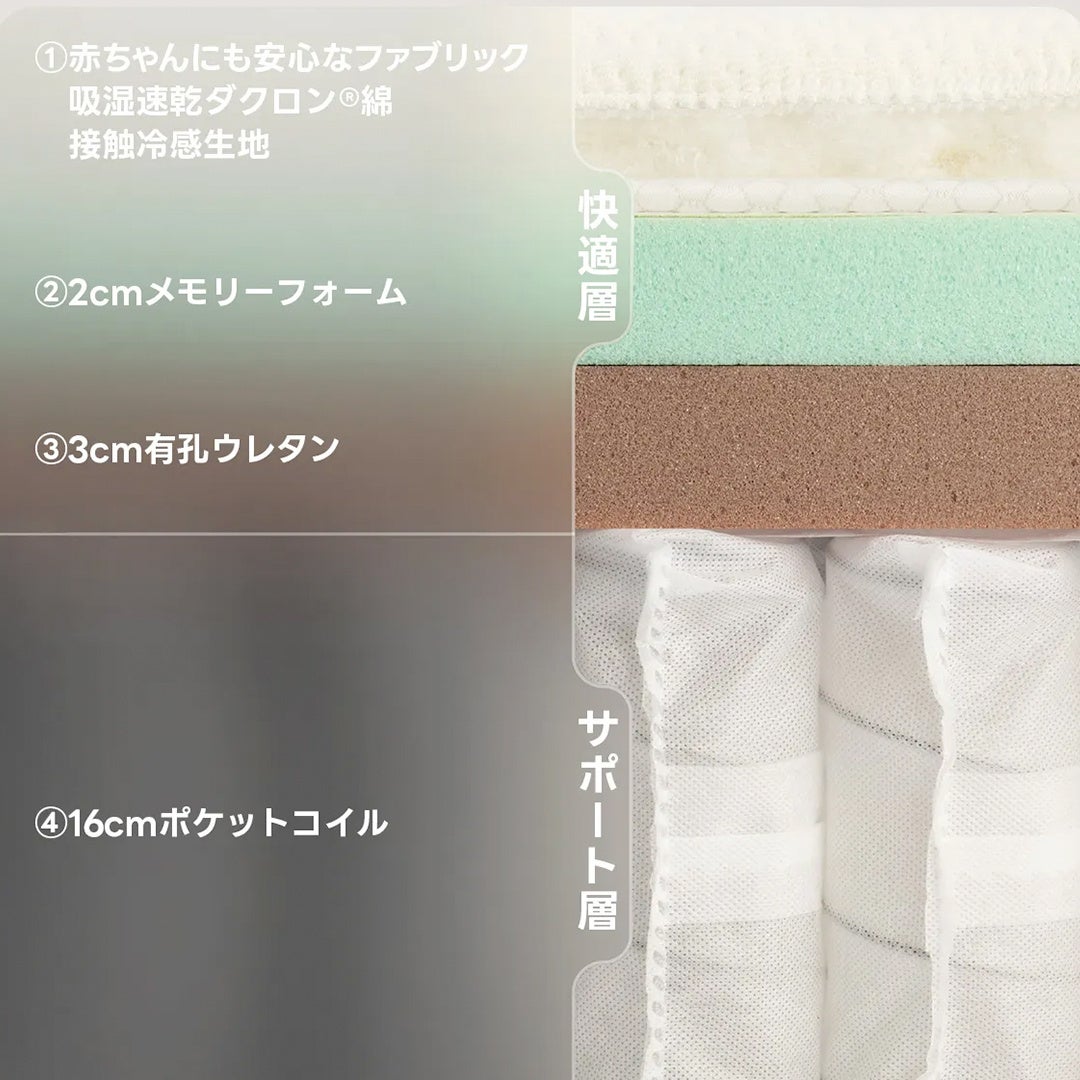 四季を通して快適に使えるリバーシブルマットレス。ファスナーで簡単に温度調整ができ、冬は暖かく柔らかな面、夏はひんやり冷感素材で快適な寝心地を実現します。取り外し可能なパッドで「やわらかめ」と「かため」の2つの硬さを自在に調整可能。体圧分散構造が理想的な寝姿勢をサポートし、深い眠りへと導きます。