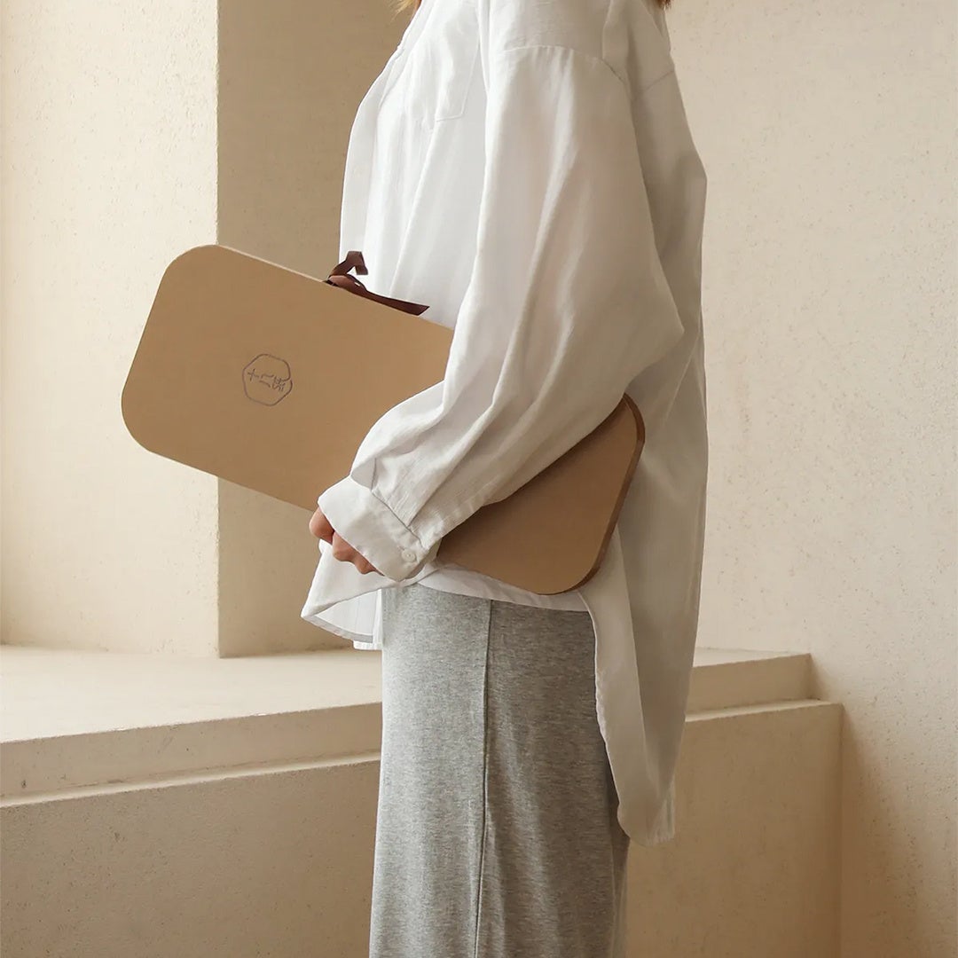 クラフト紙とハニカム構造を組み合わせることで、見た目からは想像できない最大300kgの耐荷重を実現。折りたためば雑誌ほどの薄さになり、使わない時は本棚やデスク下へすっきり収納できます。カラーはホワイト・ブラック・レッド・ブラウンの4色展開で、空間のテイストを選ばず、どんなお部屋にも自然に馴染むデザインです。
