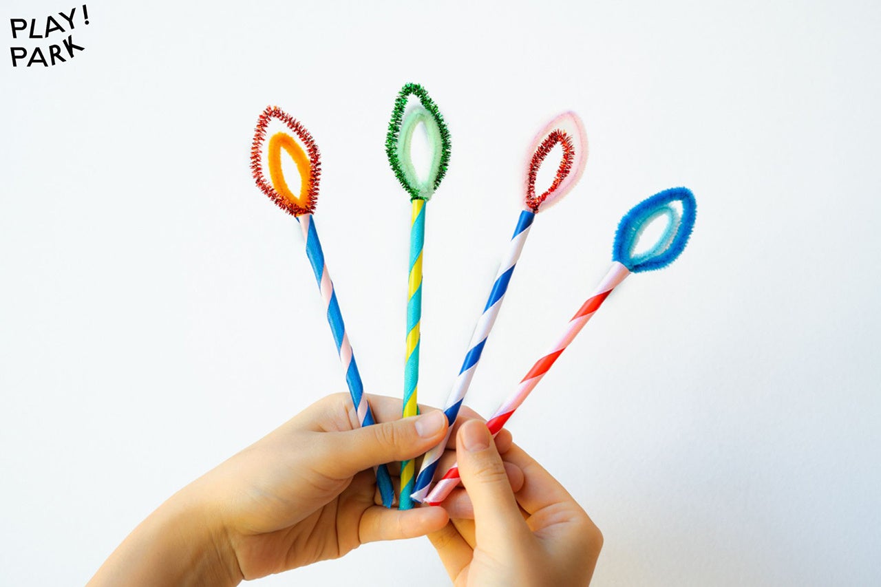 好きな色のストローやリボン、モールを使って、世界にひとつだけのオリジナルろうそくを作ります。炎をゆらゆら揺れる形にしたり、ハート型にしたりと、自由にアレンジできます。