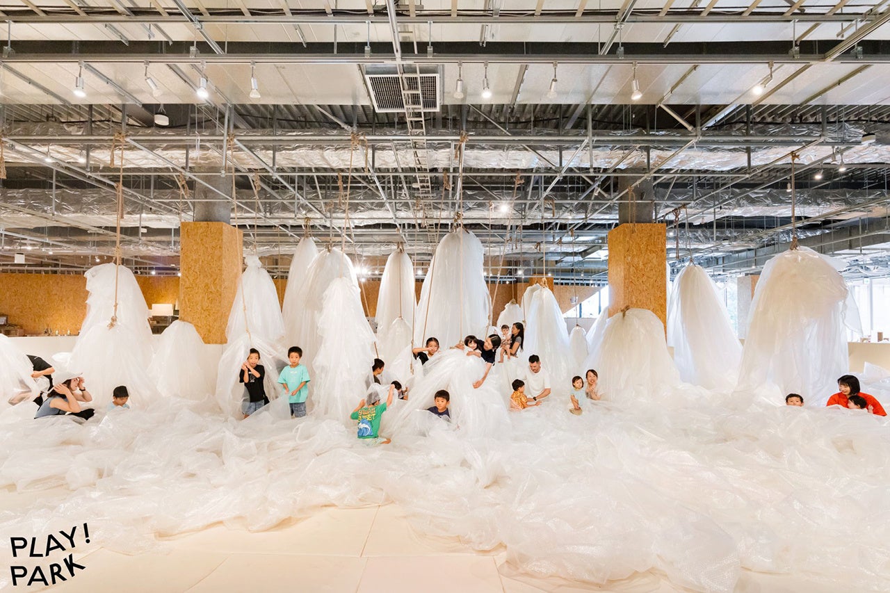 PLAY! PARKは、2020年6月に誕生した、子どもたちが自由な発想で遊べる、新しい屋内広場です。約1,000㎡の空間は、「ふじようちえん」の設計で知られる、手塚研究所によるデザインです。