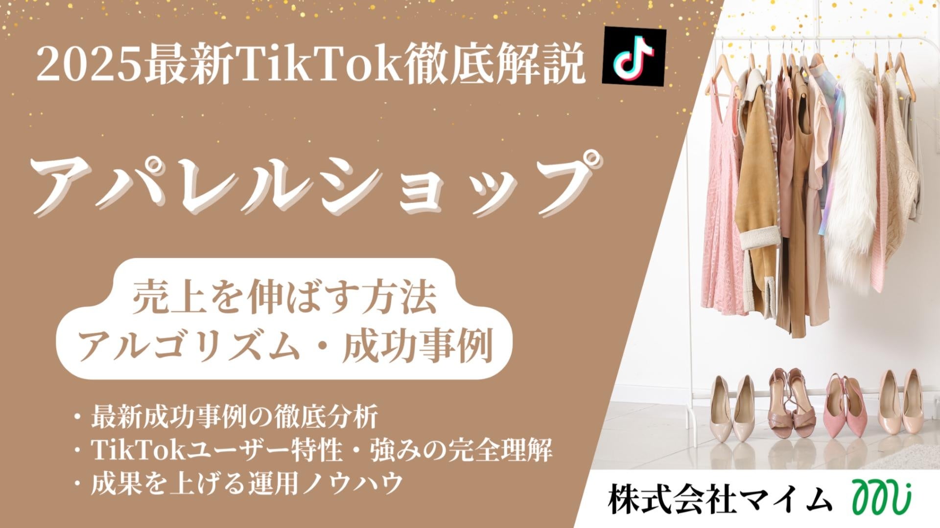 株式会社マイム(本社:東京都品川区、代表取締役社長:古川 湧一、以下「当社」)は、アパレルショップの皆様を対象に「2025年版TikTokトレンドレポート」を公開いたしました。本レポートは、TikTokを活用した最先端のプロモーション事例や成功パターン、そして結果に直結する戦略的な運用ノウハウを一冊に集約。