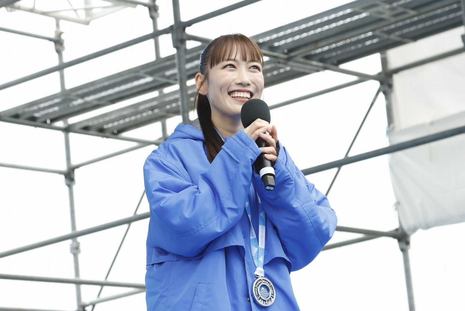 完走後、フィニッシュエリアで行われたステージに登壇した高城さんは「最初は雨が不安だったんですけど、強い雨になることはなかったので天候には恵まれたかなって思います。寒いのは大丈夫です! マラソンをやるようになってから基礎代謝が上がったというか、寒がりじゃなくなりました。以前は冬よりも夏の方が大好きだったんですけど、だんだん変わってきましたね」と天候に触れつつ、「マラソンを始めて1年ちょっとくらい経つんですけど、マラソンを始める前から『横浜マラソン』に出たいなって気持ちがありました。なので、今回出場できてすごくうれしかったです。しかも今回が初となる『湾岸ハイウェイラン』に出られたのもうれしかったですね。普段は絶対に車でしか行けない高速道路を走れるというのは新鮮でした。工場地帯や横浜ならではの海の景色だったり、すごく眺めが良かったです」と「横浜マラソン」出場が念願だったと明かしました。