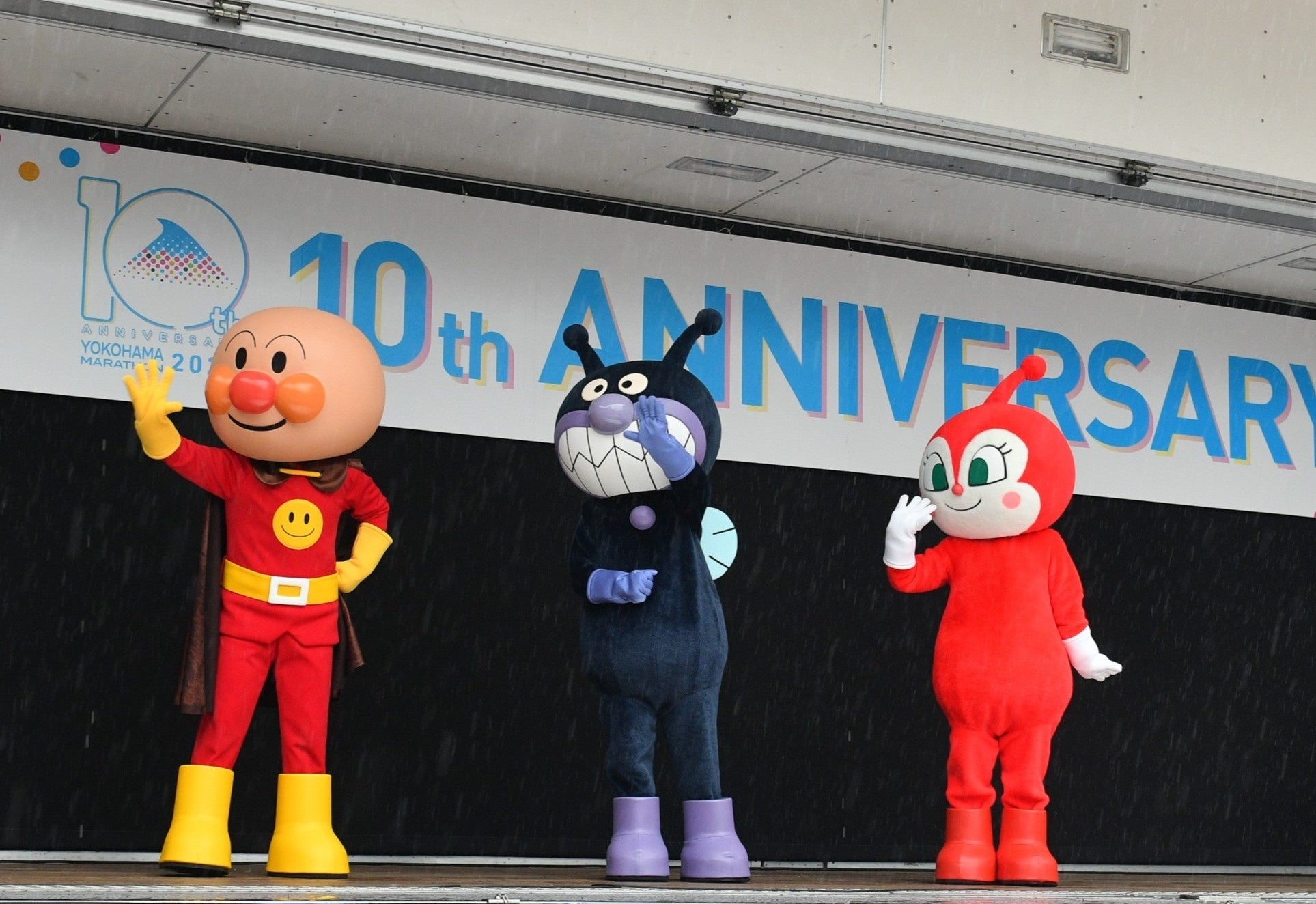 「ファンラン(ファミリー、中学生、車いす)」スタート地点では、横浜アンパンマンこどもミュージアムから駆け付けたアンパンマン・ばいきんまん・ドキンちゃんが応援パフォーマンスを披露。