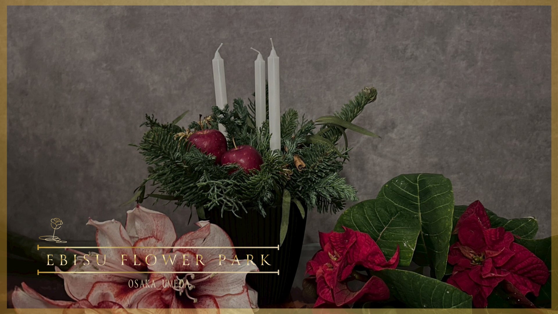 EBISU FLOWER PARK 総合フラワーディレクター兼、大阪梅田店・店長を務めるアーティスト井水による2種類のクリスマス体験をご案内します。