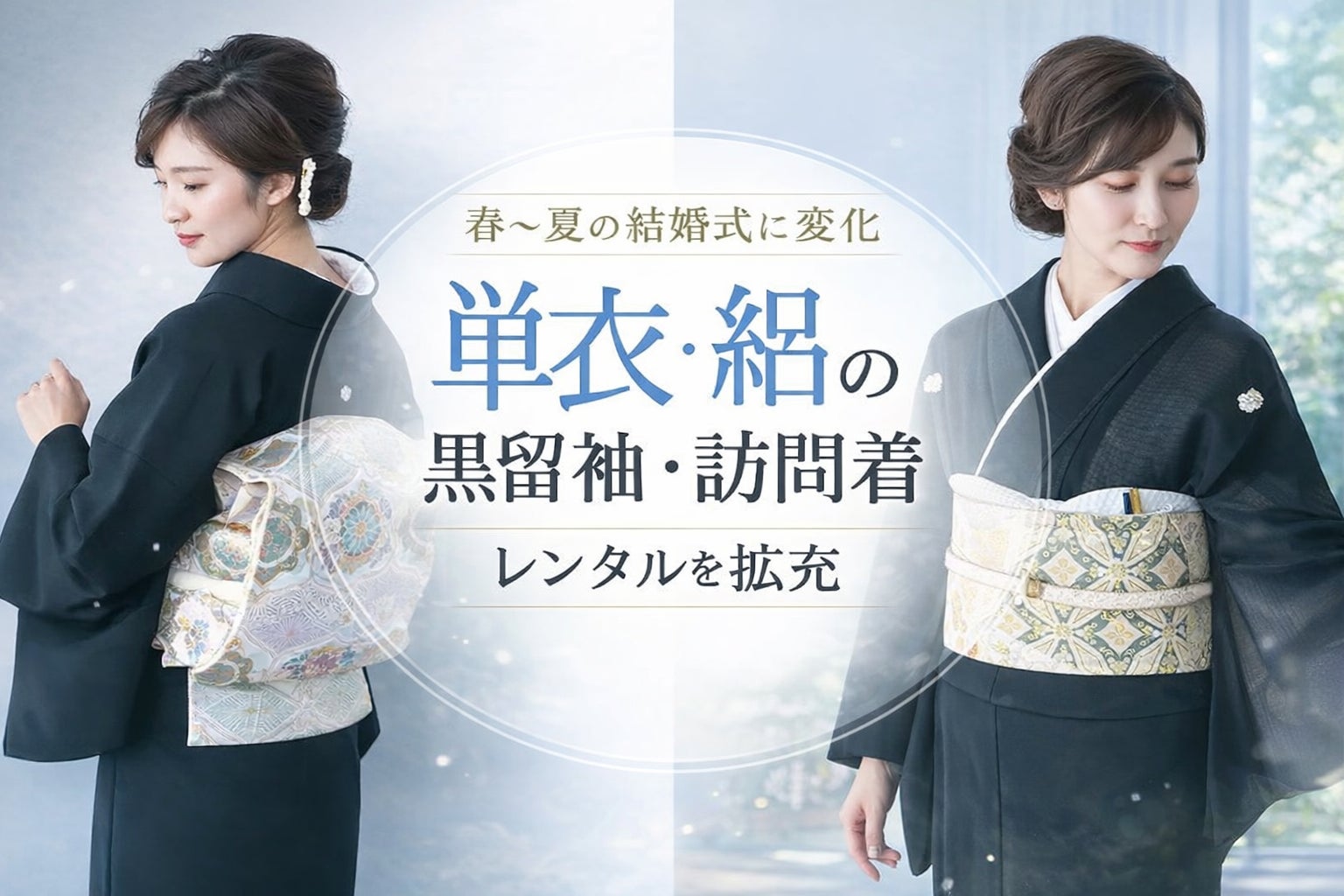 春〜夏の結婚式に対応し、単衣の黒留袖・訪問着を新たに展開。格式を保ちながら、暑い季節でも快適に美しく装える選択肢をご提案します。