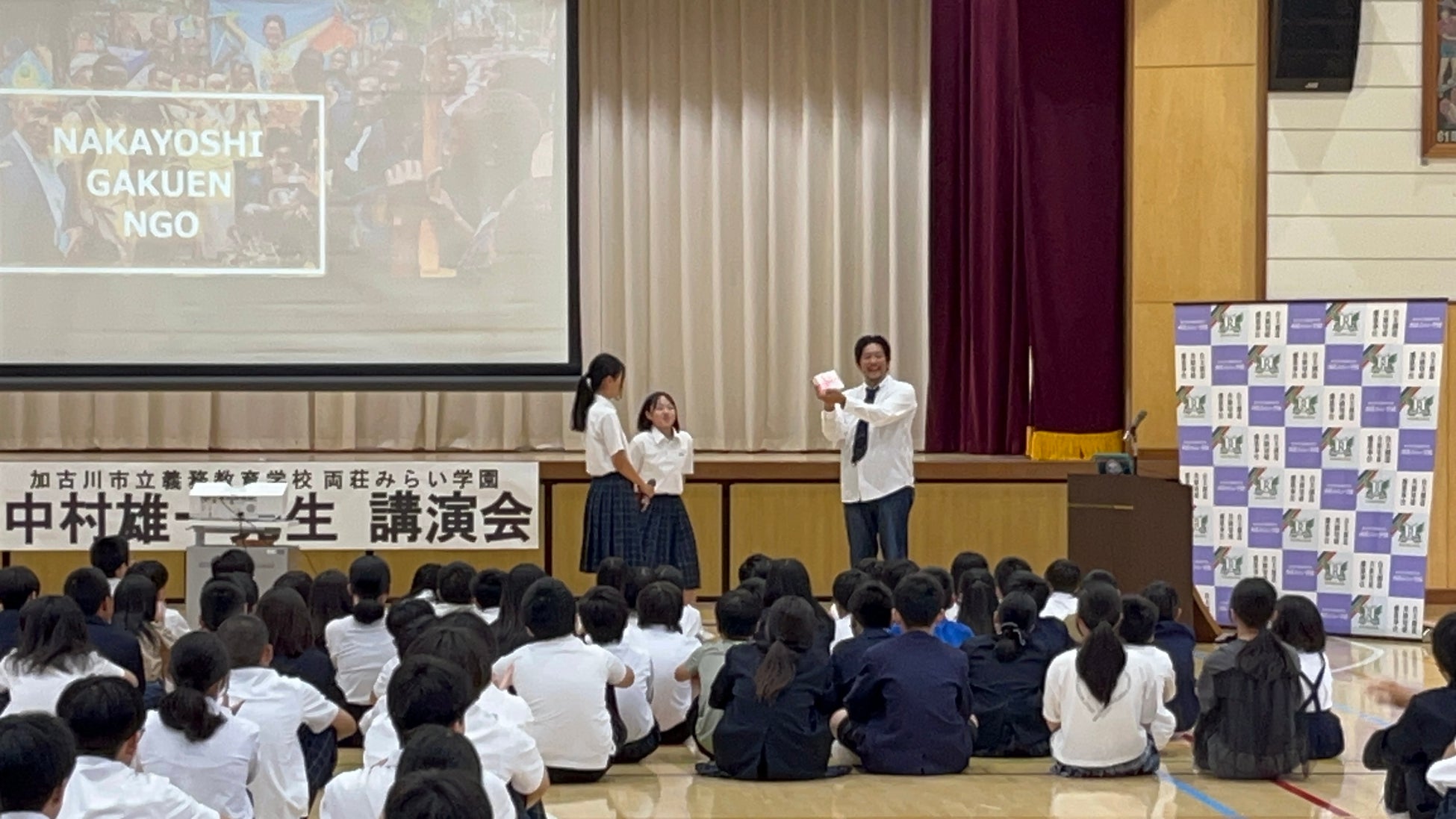特定非営利活動法人なかよし学園プロジェクト(代表:中村雄一/千葉県松戸市)は、2025年11月27日、兵庫県加古川市立 両荘みらい学園にて3年生を対象とした「世界とつながる学び」講演会を実施しました。