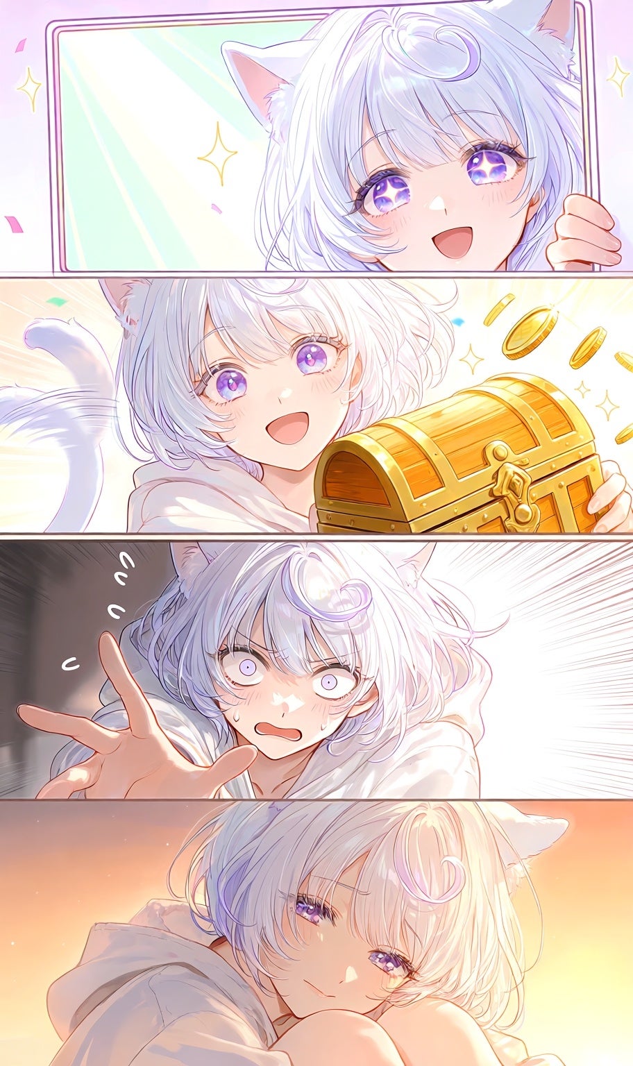 単体イラストにとどまらず、キャラクターデザイン原案から複数キャラの一括設定、マンガ表紙、連続シーンのストーリーシーケンスまで、1つの会話スレッド内で一貫して展開できます。「異世界漫画のキャラを3人作って」から「この3人で表紙を作って」「この設定で物語を描いて」と続けるだけで、画風・色調・キャラクターの統一性を維持したまま、作品丸ごとの制作が完結します。「異世界漫画のキャラを3人作って」から「この3人で表紙を作って」「この設定で物語を描いて」と続けるだけで、画風・色調・キャラクターの統一性を維持したまま、作品丸ごとの制作が完結します。