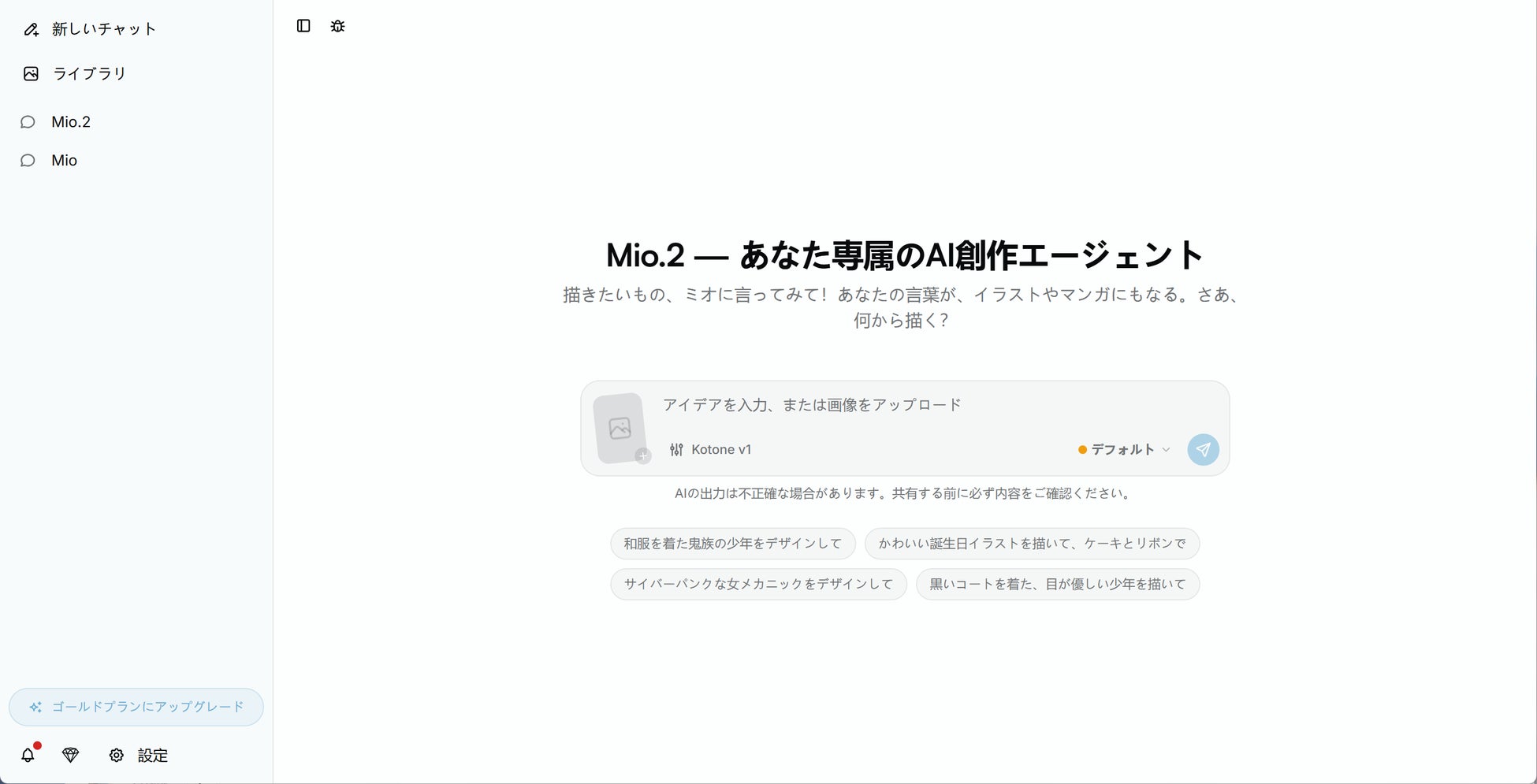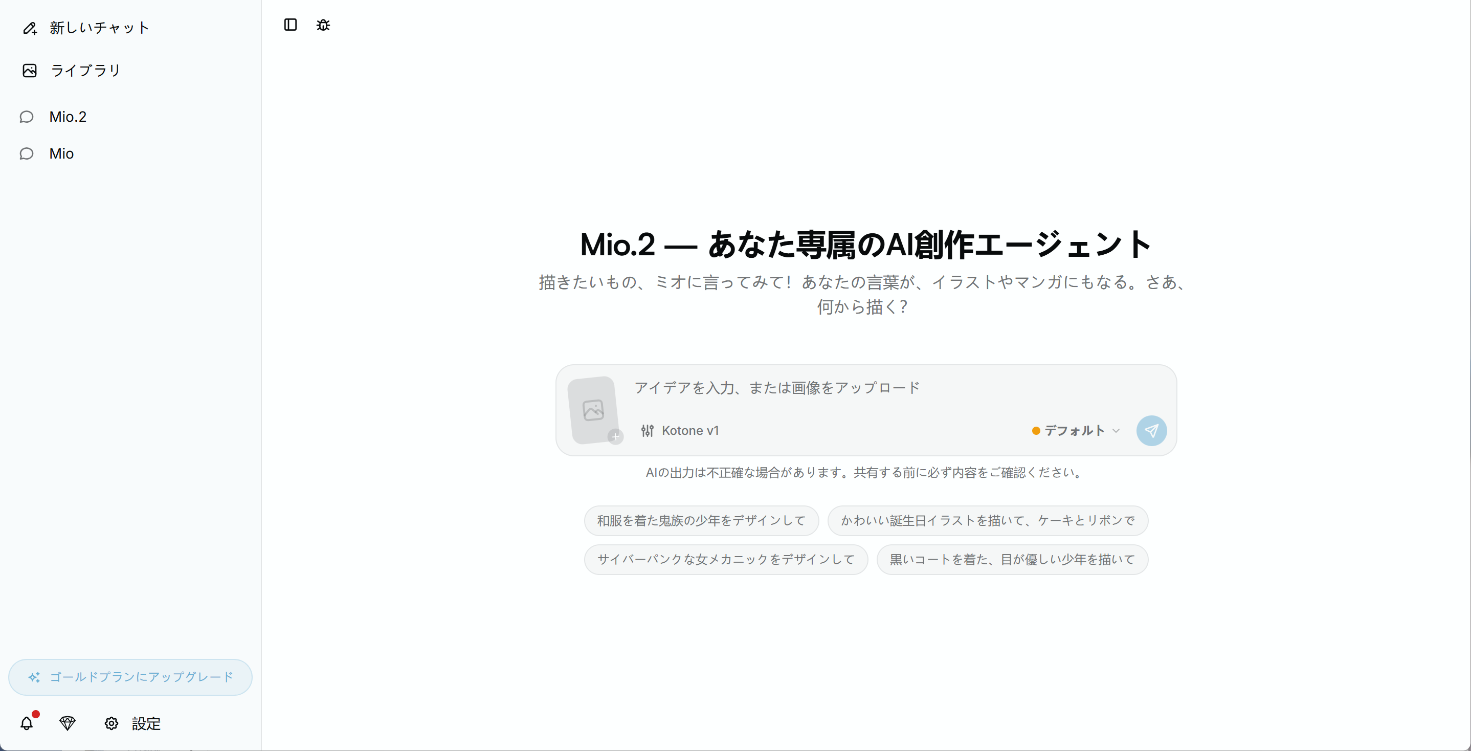 「Mio.2」は、プロンプトの知識がなくても、チャットで話しかけるだけでプロ品質のイラストを生成できる対話型AI創作エージェントです。日本語はもちろん、英語をはじめ繁体字中国語・韓国語に対応しております。リリースを記念して、Amazonギフトカードが当たるなど、総額54万円超のSNS創作イベント「Mio.2 しりとりチャレンジ」 も同日より開催いたします。