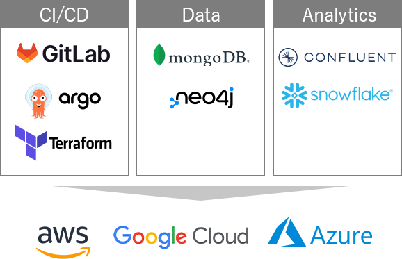 マルチクラウドの環境をサポート。マーケットプレイス上のツールも一括でサポートします。ソリューションを組み合わせた、トータルでのご支援が可能です。
