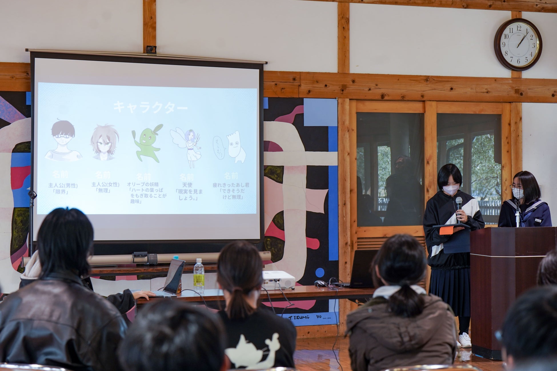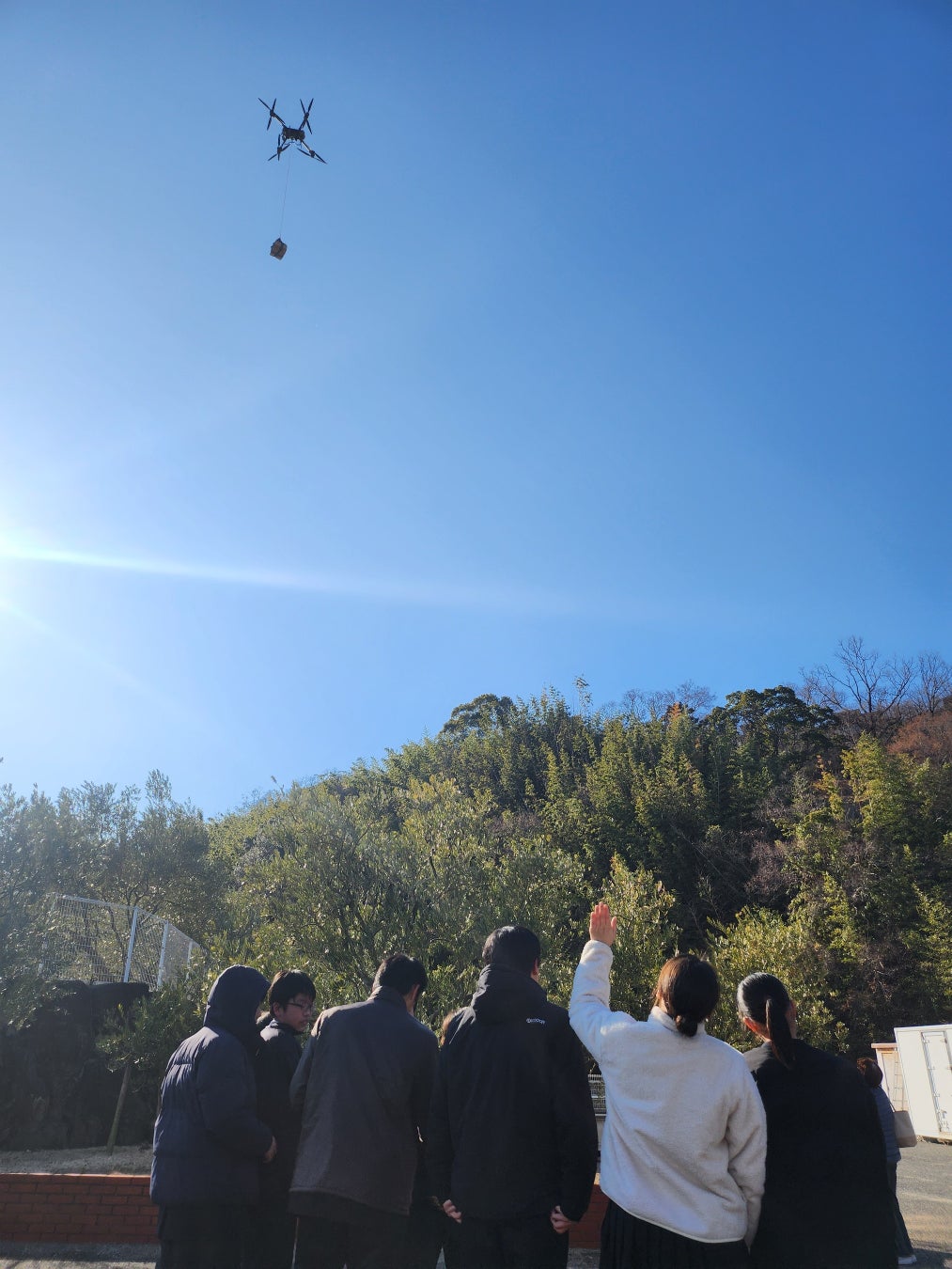 発表したのは、ドローンで島の課題を解決する3つの案と、ゲーム制作で島の魅力を広く発信する2つの案。観光客が港に到着後すぐに散策できるよう荷物をドローンでホテルに運ぶ案と、高齢農家の負担を減らすため野菜をドローンで産地直送所や家庭に運ぶ案はドローンを実際に飛ばす実験も行いました。制作したゲームは町長らが体験しました。