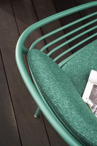 そして、屋内外を問わない魅力を添えるやわらかな仕上げ。ソフトで肌触りのよいブークレファブリック張りのCANCÚNシート&バッククッションは、それぞれの色を合わせ、トーン・イン・トーンにしたり、色違いでコントラストをつけるなど、全ての組み合わせにてシーティングを完成させることが出来ます。