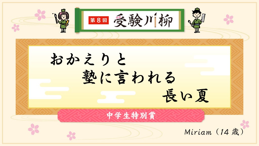 - おかえりと 塾に言われる 長い夏 (Miriam)