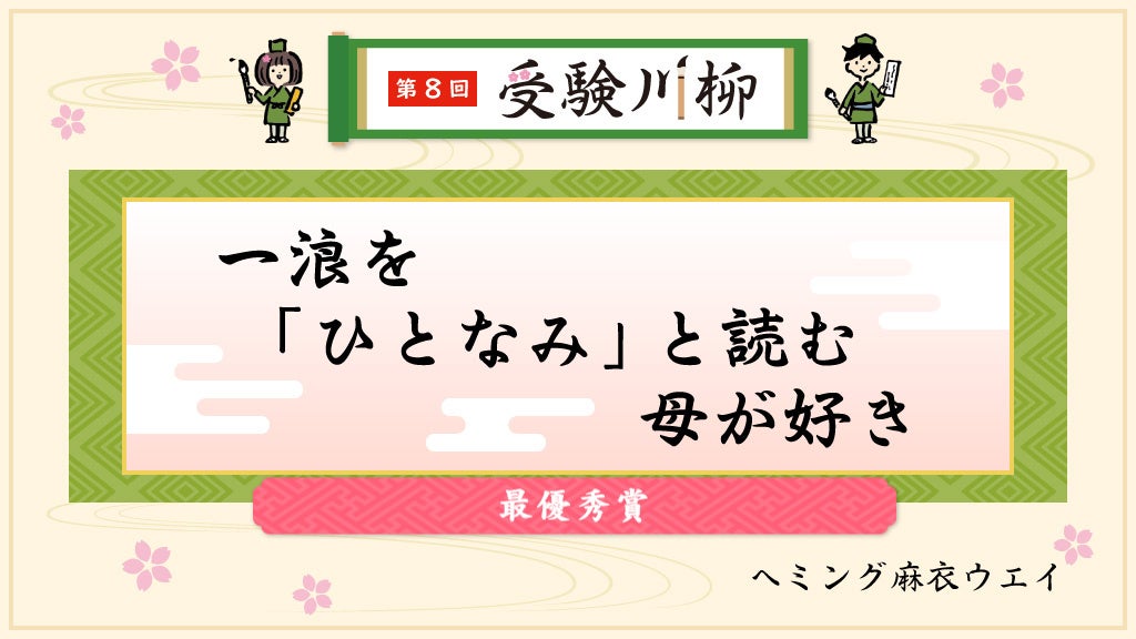 ひきつづき、第9回「受験川柳」を募集します。受験にまつわるエピソードや受験への想いのこもった作品、楽しくユニークな作品、受験生を応援する作品など、たくさんのご応募をお待ちしております。