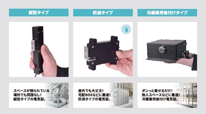 ソレノイド専業メーカーが開発した「薄型・頑丈・日本製」の電気錠シリーズ。既製品への組み込みからOEM/ODMまで対応。
