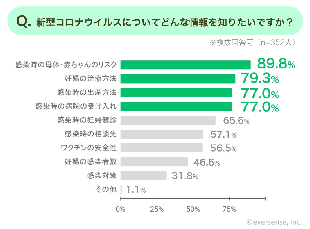 ・全国で今までにコロナ感染した妊婦の人数と重症化した人数、感染後の経過と赤ちゃんへの身体的影響はあったか等をわかりやすく発信してほしい。