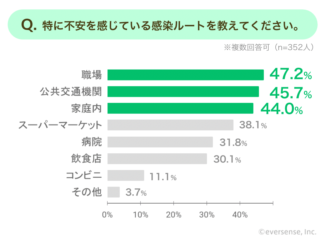 - 「職場」「公共交通機関」「家庭内」での感染に不安。