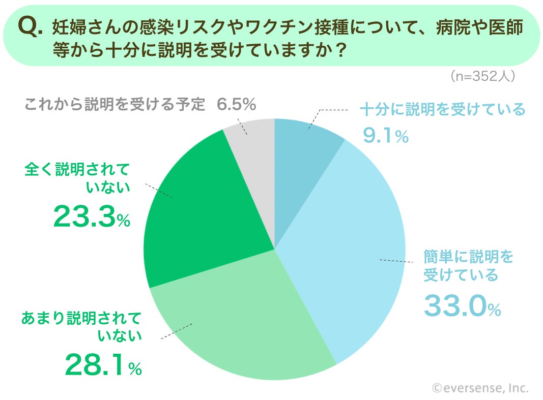 - 半数の妊婦が、感染リスクやワクチン接種について、病院や医師等から「十分に説明されていない」。