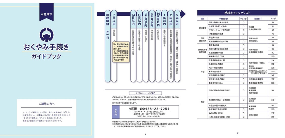 死亡届の提出や年金受給の停止など、逝去後の各種手続き一覧や関連窓口を掲載したハンドブックです。自治体と協働刊行し、遺族に配付することで、大切な方を亡くした遺族の負担を心身ともに軽減します。