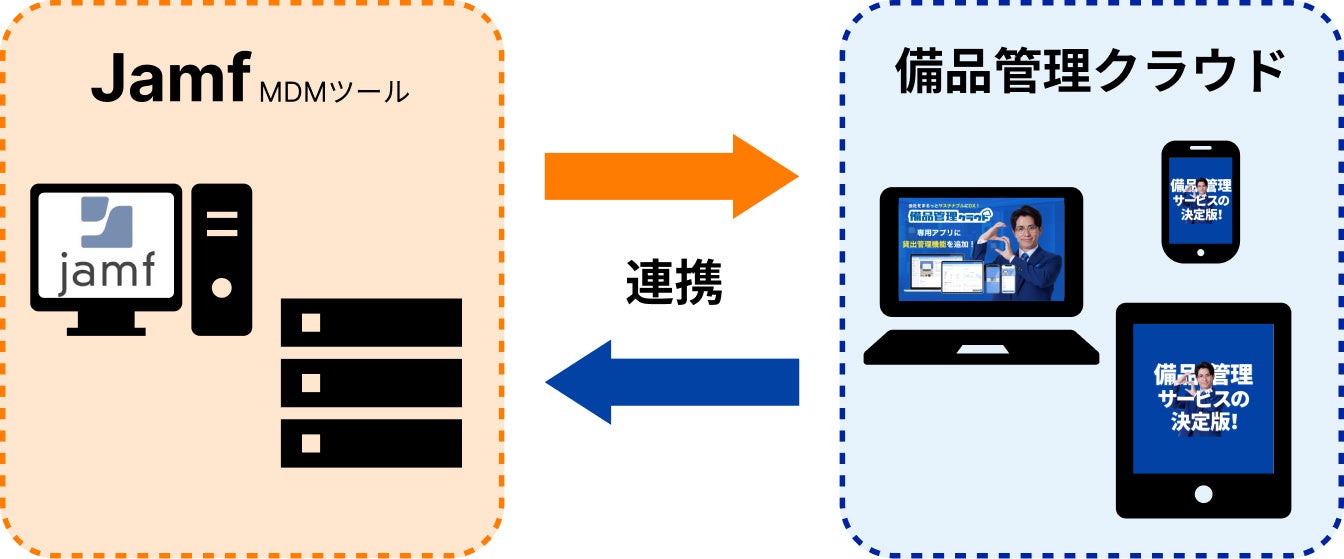 連携でかんたんに台帳登録・管理できる「備品管理クラウド」は、この度、MDMツール「Jamf」と連携いたしました。