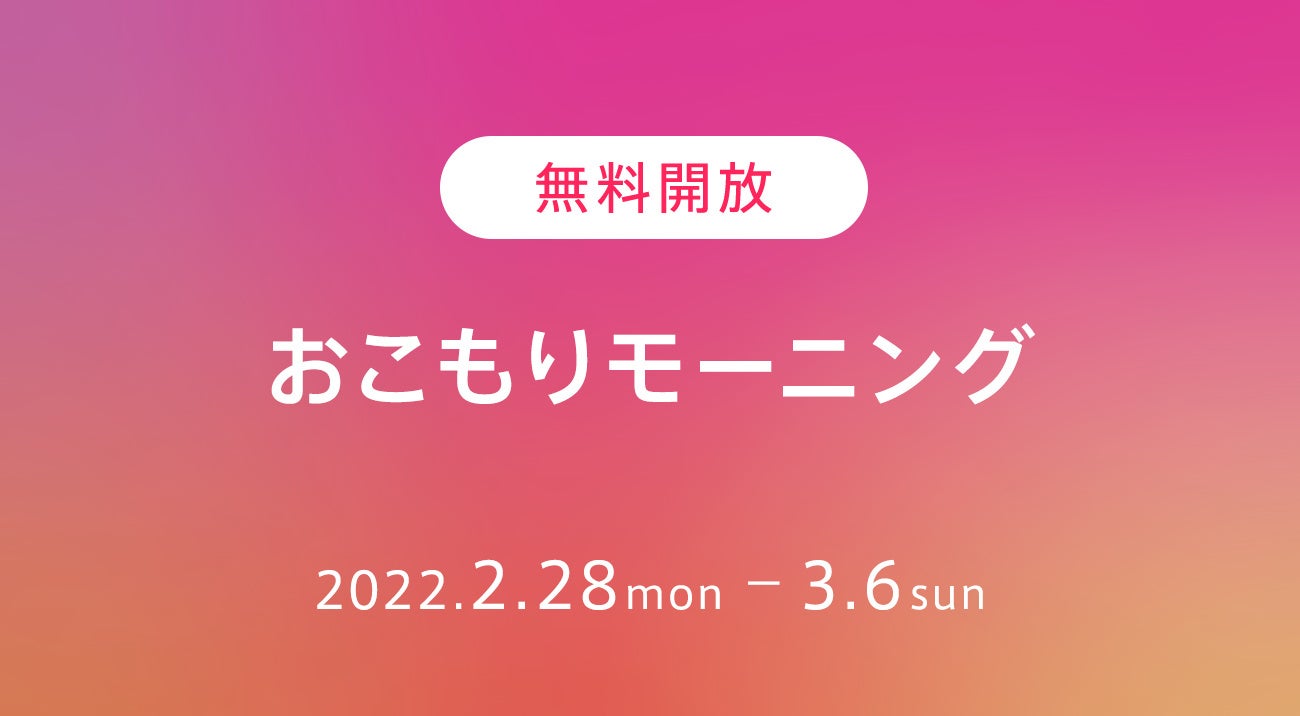 昨今の感染症拡大に伴い、ご自宅で過ごしたり仕事をされる時間が再び増加しています。おこもりが増え、毎日のリズムが崩れぬよう、朝の時間帯に”無料開放レッスン”を1週間の期間限定で配信します。こちらのレッスンは既存のユーザーだけでなく、これから会員登録される方も対象となり、現在トライアル利用中の方もチケットを消費せず参加することができます。