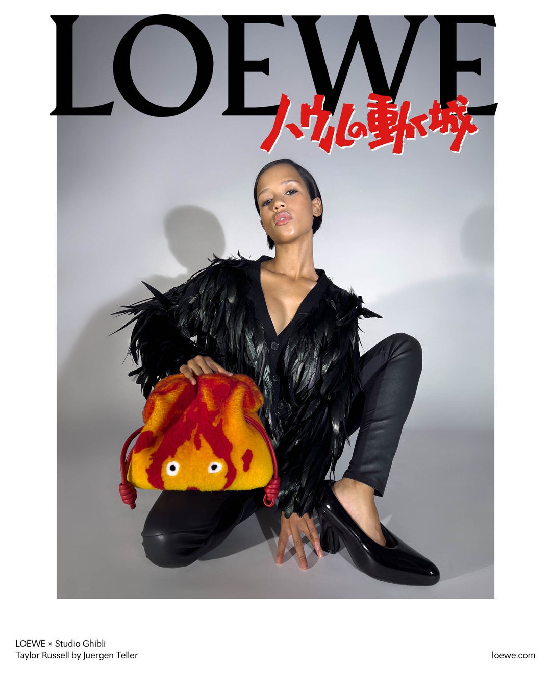 ロエベ×スタジオジブリがおくる3度目にして最後のコラボレーションは、感情を揺さぶる名作『ハウルの動く城』。主人公のソフィーやハウル、炎の悪魔カルシファーやマルクル、荒地の魔女など、おなじみのキャラクターたちがロエベの創造的なアプローチによって、バッグやウェア、レザー小物に生き生きと蘇ります。