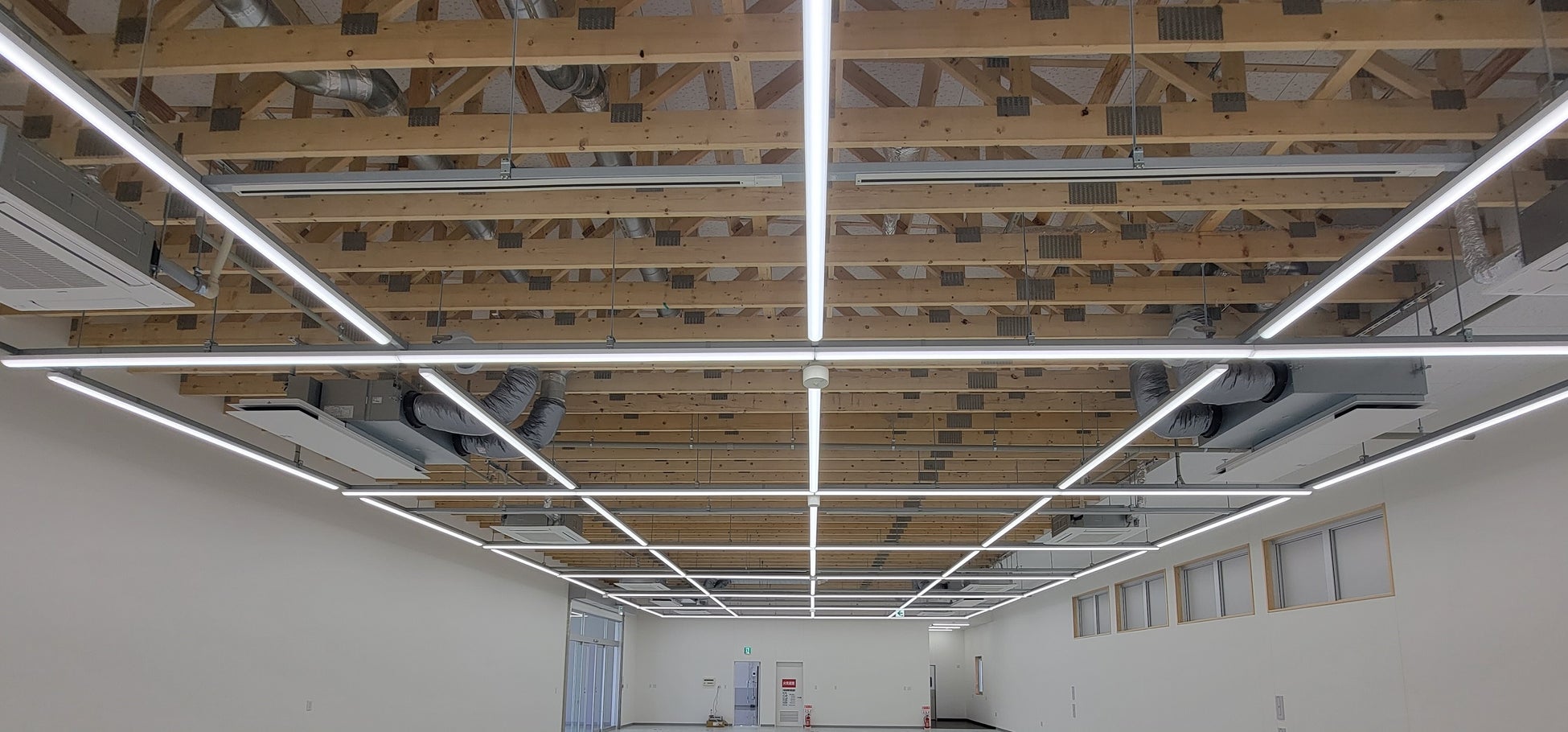 木造躯体はツーバイフォー材を主に使用した枠組み壁工法とし、トラス架構採用により店舗売場の有効寸法を広げました。売場の天井部分はトラスを露出させ、木材による温かみを演出しています。また、商品を陳列する一部什器にも地元木材を使用しています。今回5つ星およびZEB Ready※を取得した同店舗は同様の木造建築の条件下の物件と比較して、冷暖房と照明などの一次エネルギー消費量を57%程度削減できる見通しです。