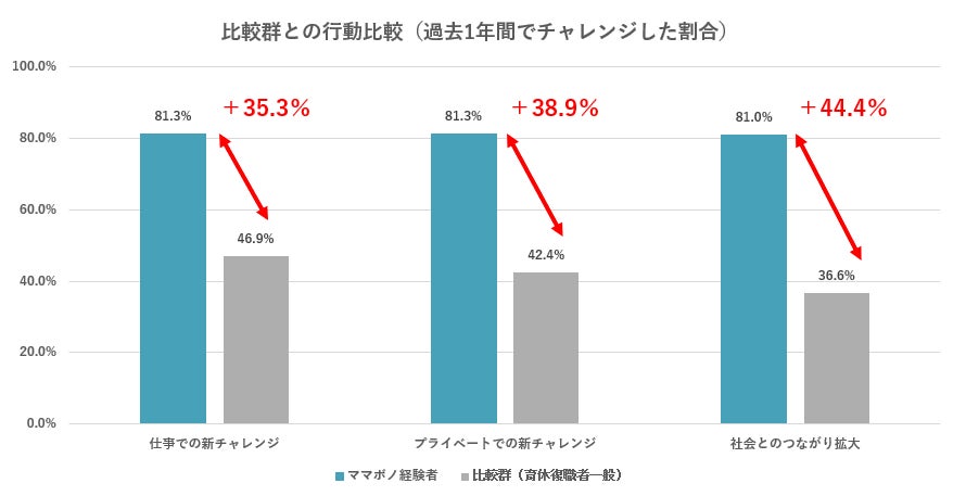 仕事での新チャレンジ(実績):ママボノ81.3% vs 比較群46.0%(+35.3%)