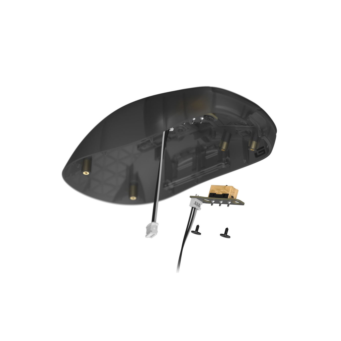 メインスイッチを簡単に変更できるスクリューデザインを採用。はんだ付けの必要なく、プラスネジを外しスイッチを引き抜くだけで入れ替えできる。Endgame Gearが用意した様々な交換スイッチ(オプション品)から、自分だけのお気に入りにカスタムできる。