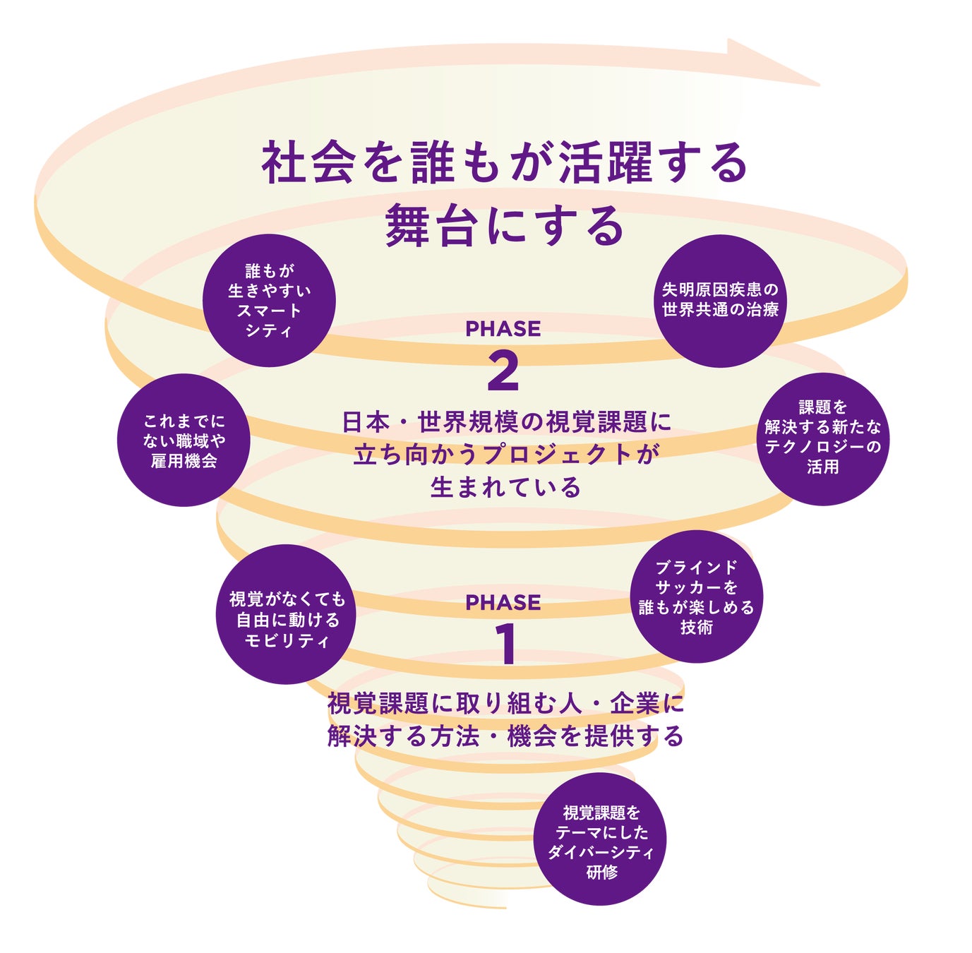 また、視覚課題者当事者支援に貢献するだけでなく、大手企業、テクノロジー系スタートアップ企業に新規事業創出や技術革新の機会を提供します。