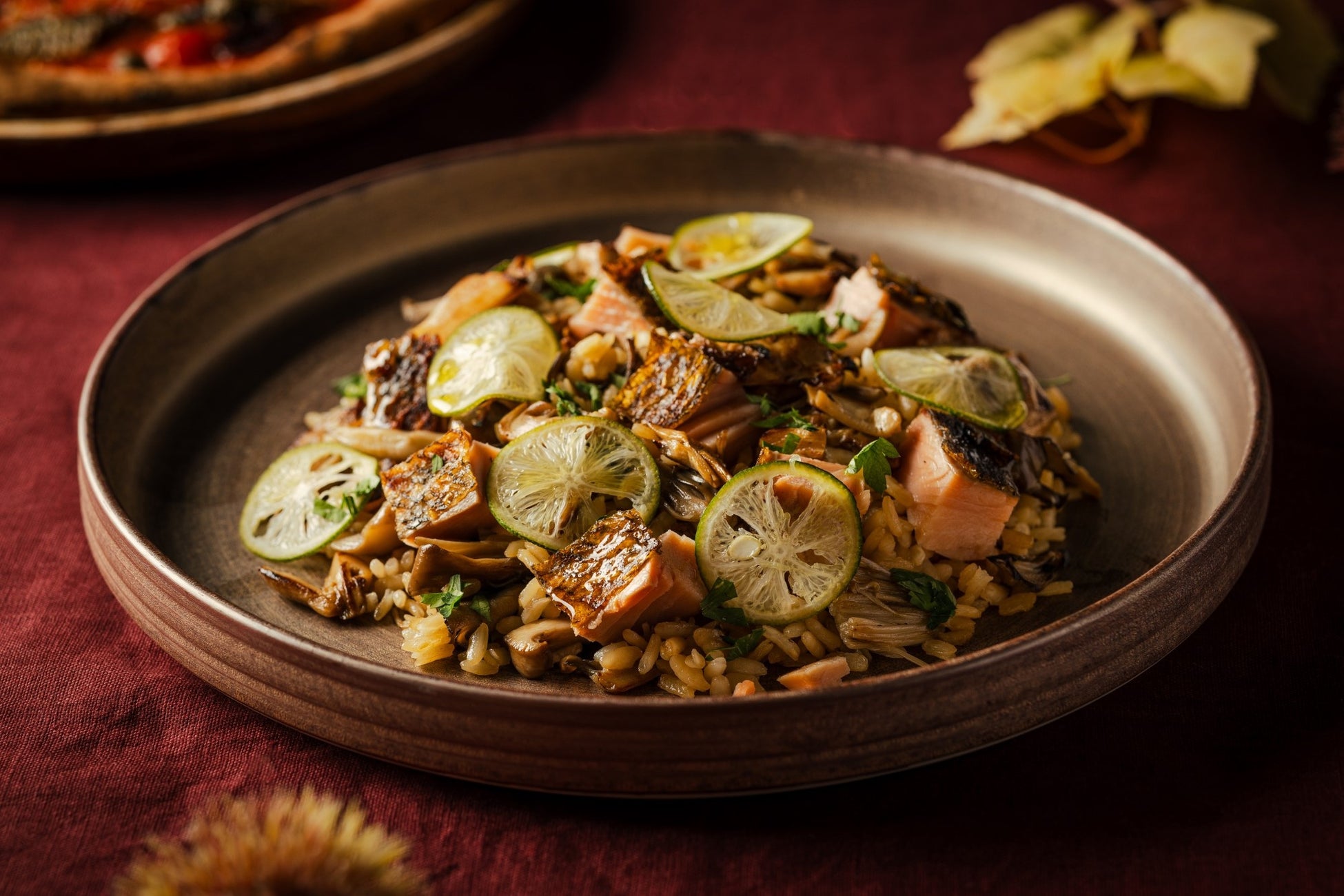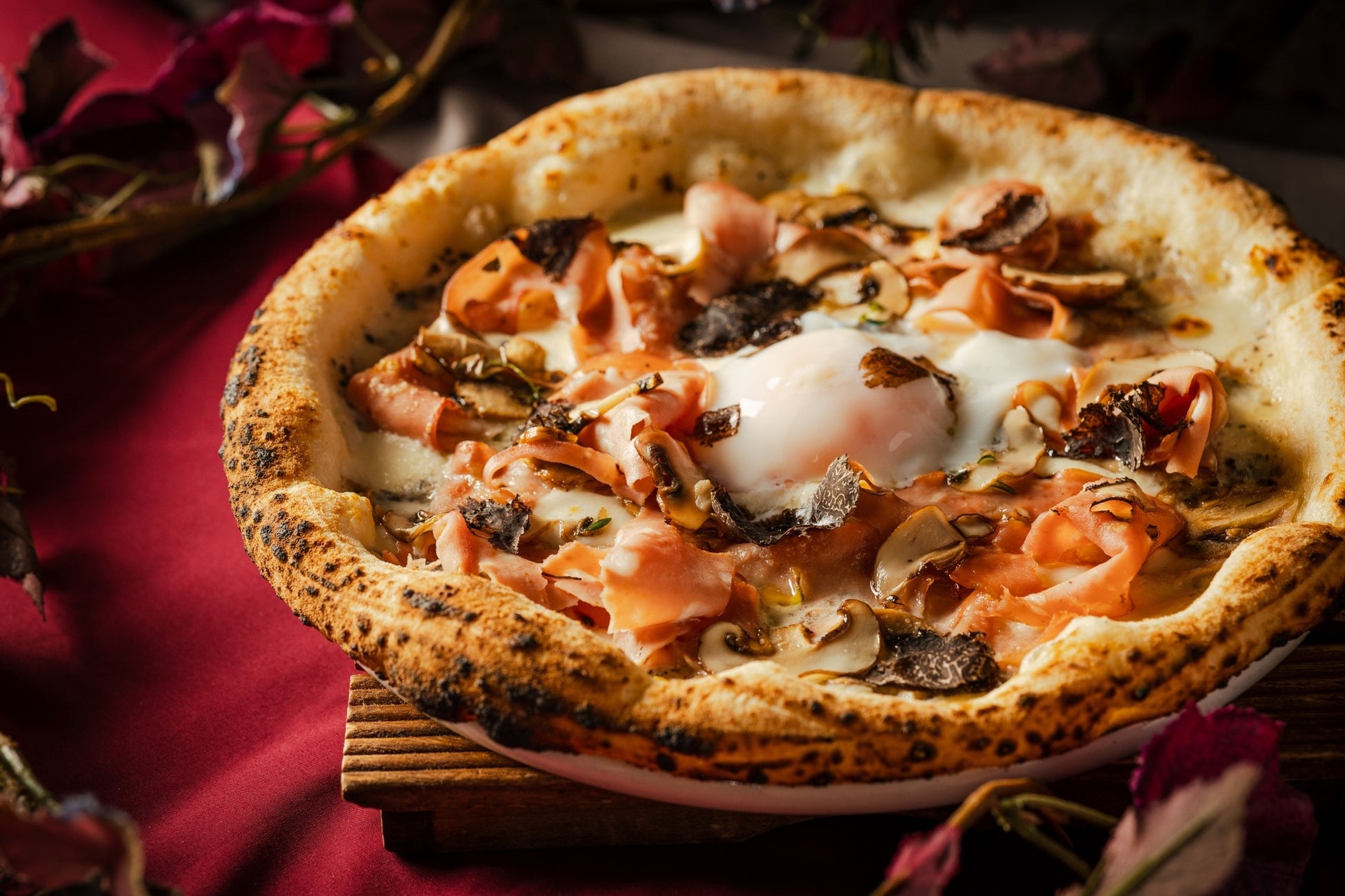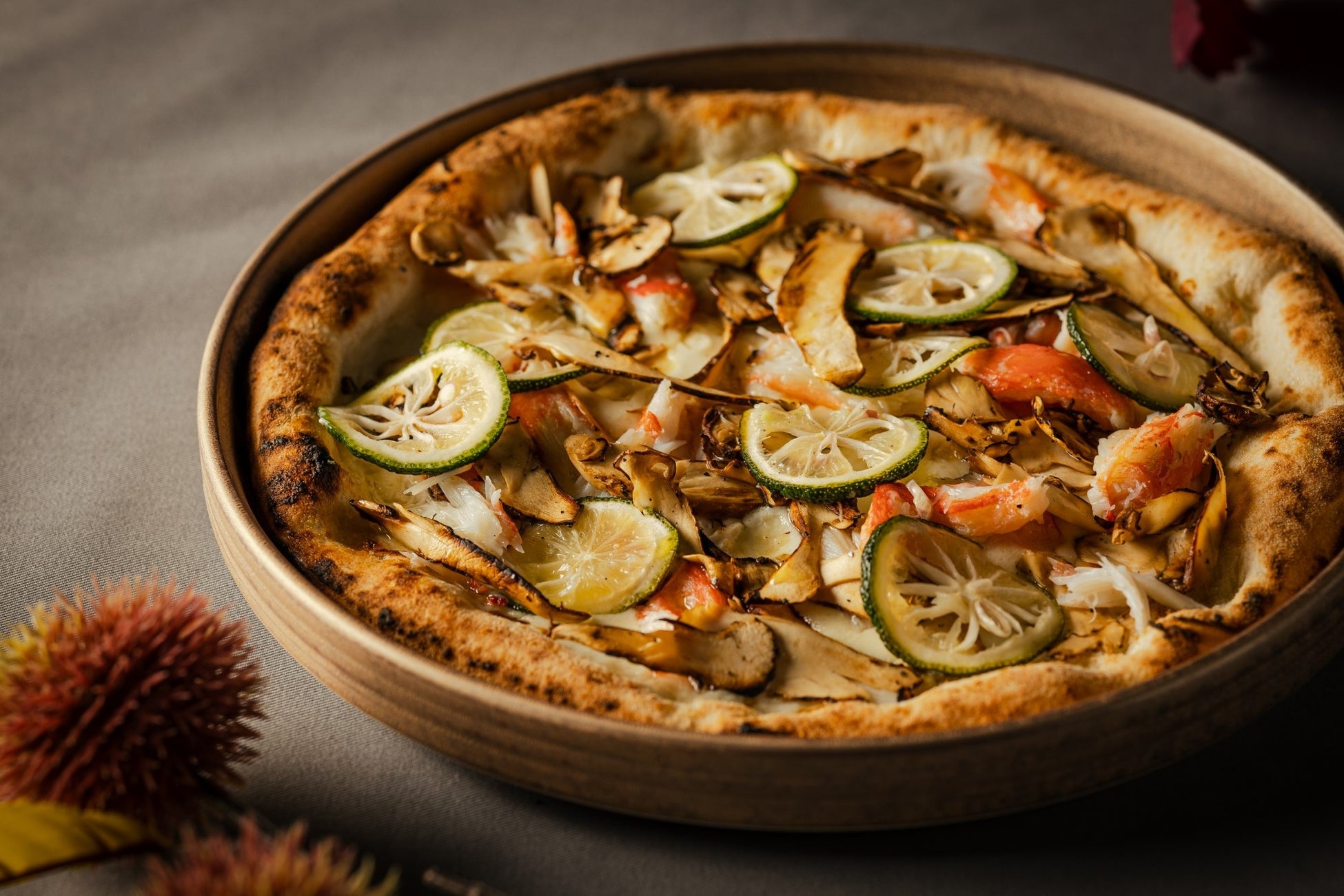 自慢のイタリアンに香り高いトリュフや安納芋、松茸など秋の旬な食材を掛け合わせた料理は絶品ばかり。「黒トリュフとマッシュルーム パルミジャーノチーズのリゾット」や「秋刀魚と秋茄子のピッツァマリナーラ」など、香りと共にお楽しみください。