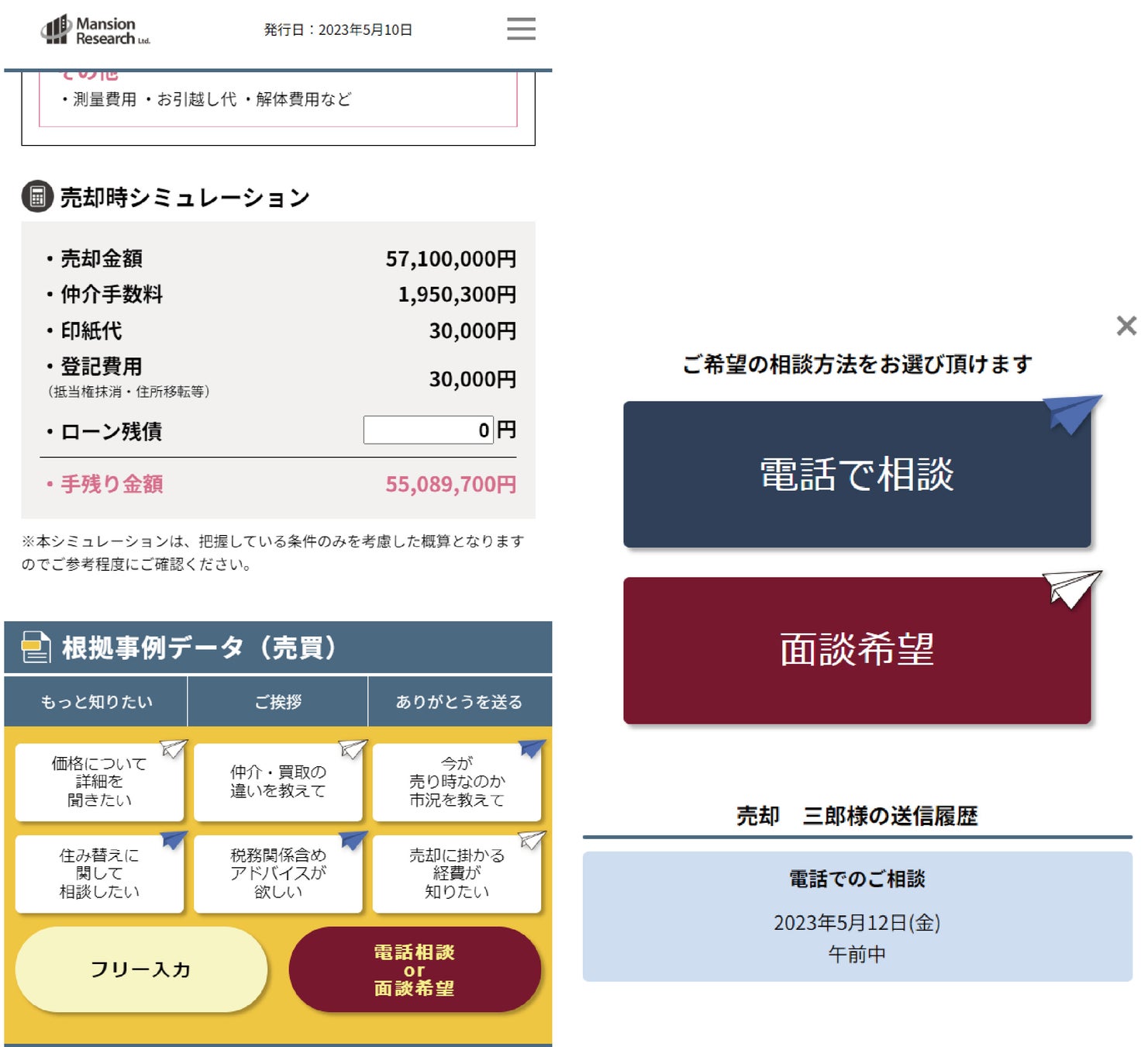 弊社が提供する不動産売却査定書作成ツール「ロボ査定」は、単に査定内容を売主様に伝えるのではなく“営業ができる”査定書を目指しています。かねてから、スマートフォンでも見やすい仕様とし、どこよりも多い取引事例を基にした精度の高い査定システムをご提供してきましたが、この度、新たに、査定書上から簡単に営業担当者とコミュニケーションが取れる新機能を追加しました。