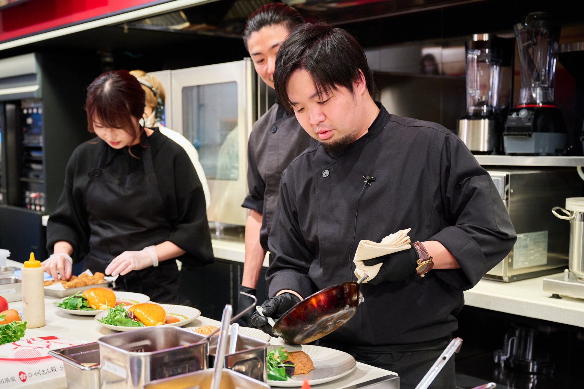 決勝大会では、書類選考、全国9エリアで実施した実食審査を伴うエリア大会、WEB投票を勝ち抜いた3店舗のシェフが調理実演を行い、料理研究家のリュウジさんや声優の安元洋貴さんらの審査員の実食審査にて、「日本一食べたくなるオムライス」を決定しました。