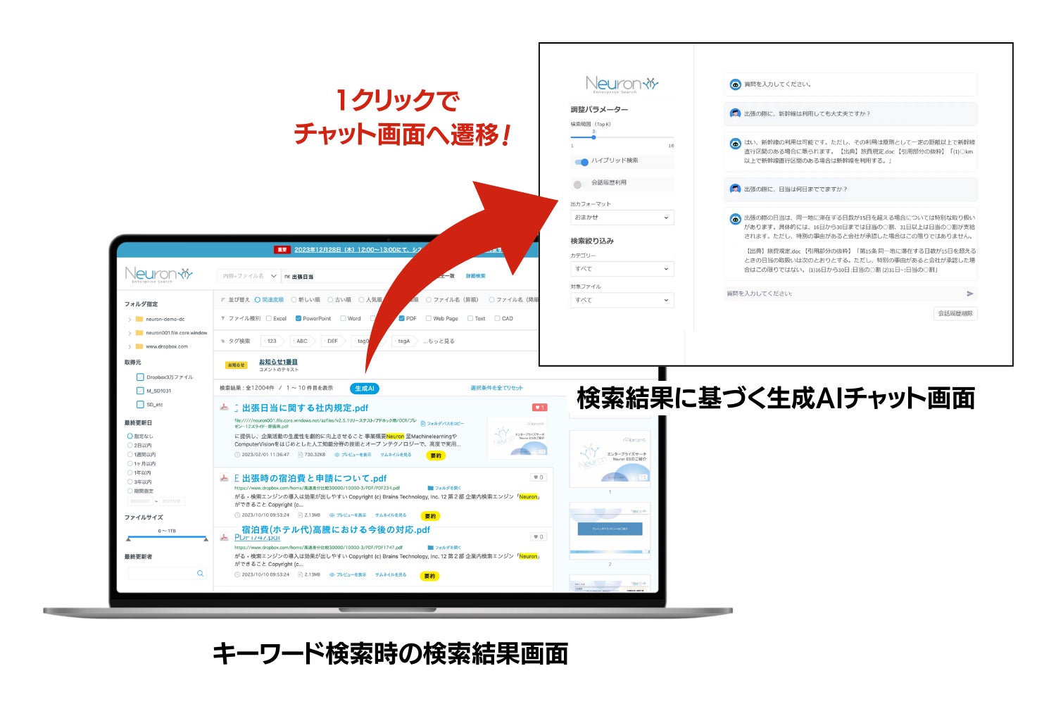 ブレインズテクノロジー株式会社(本社:東京都港区、代表取締役:濱中佐和子、以下ブレインズテクノロジー)は、エンタープライズサーチ「Neuron Enterprise Search(以下、Neuron ES)」の生成AI連携オプションの提供を2024年11月1日(金)より開始いたします。