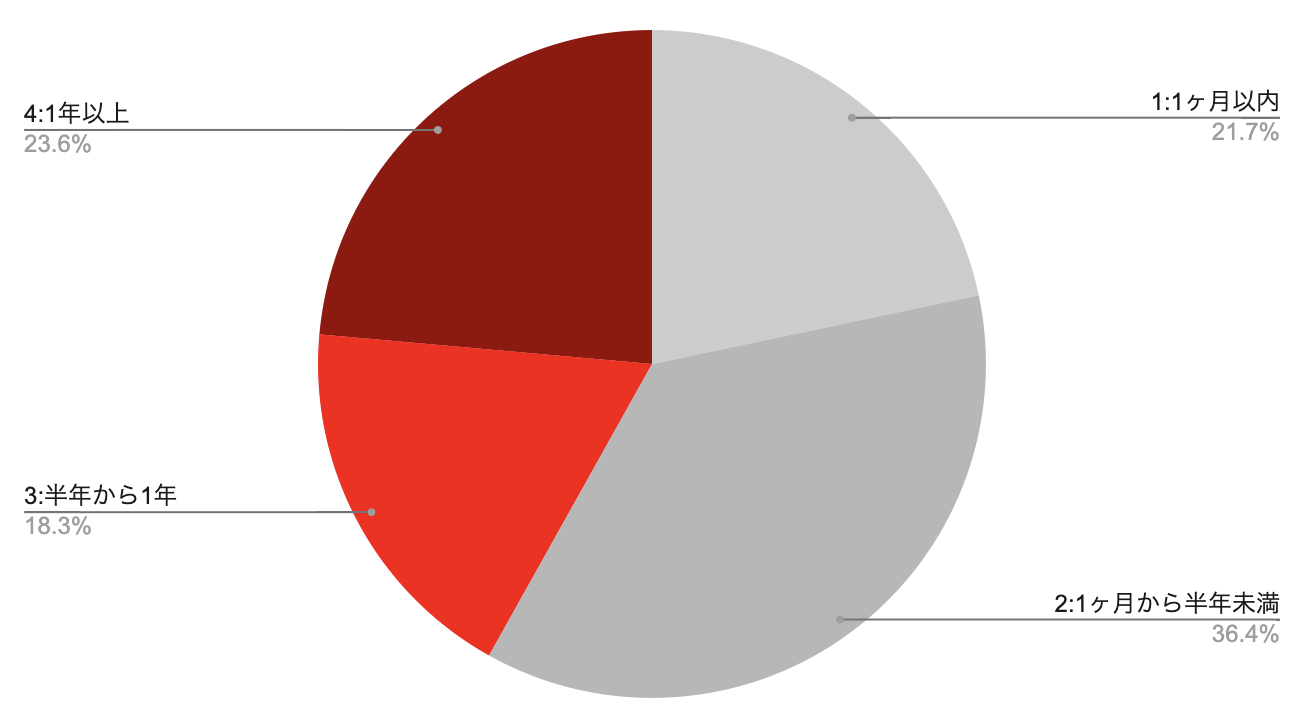 | 具体的な行動に移るまでの期間 | 1ヶ月以内 | 1ヶ月から半年未満 | 半年から1年 | 1年以上 |