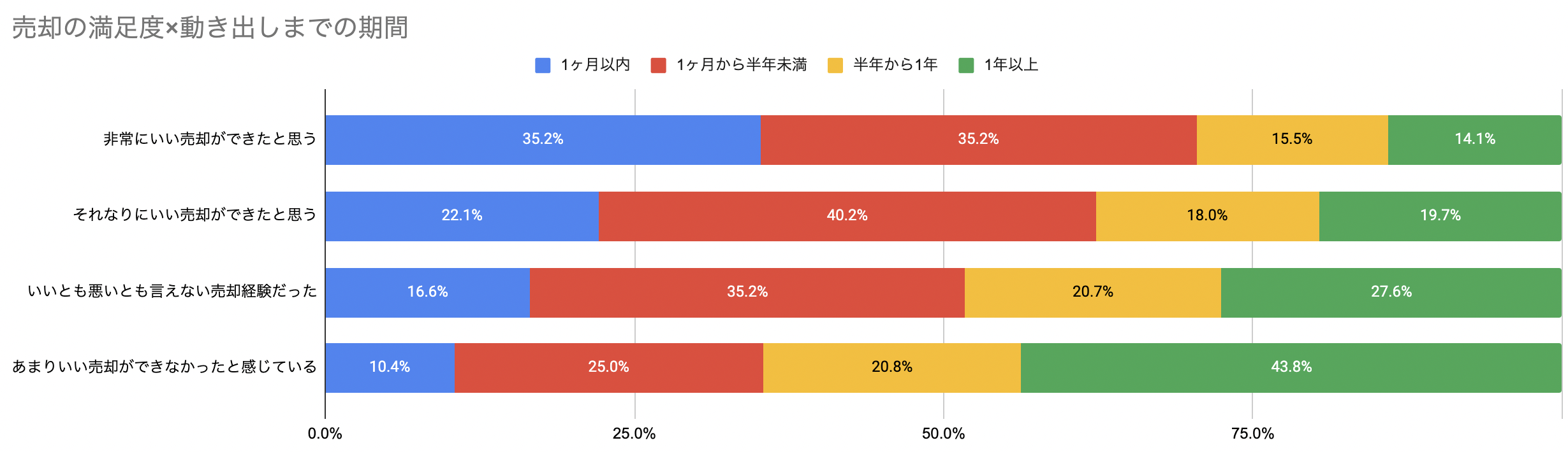 - 最終的な売却の満足度と動き出しの期間には相関がある