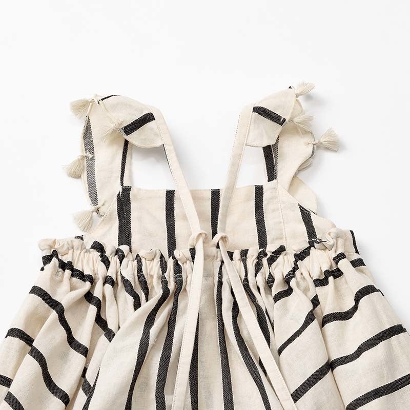 暑い夏も涼しく過ごせるよう、通気性が高い生地を採用。アクティブな子供たちにの動きに合わせ、揺れるタッセルがチャーミングな1枚です。