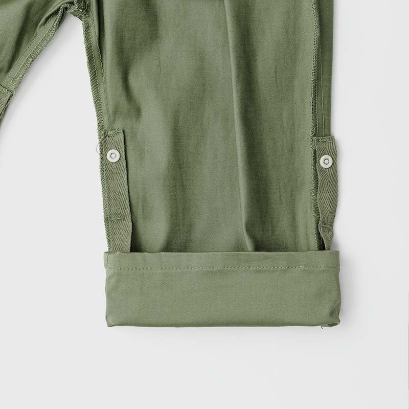 成長期の子どもに嬉しいサスペンダー付き。ウエストサイズと裾丈を調整できるので。2~3年の着用が可能です。年齢とシーズン、2つの意味でロングユースなアイテム。