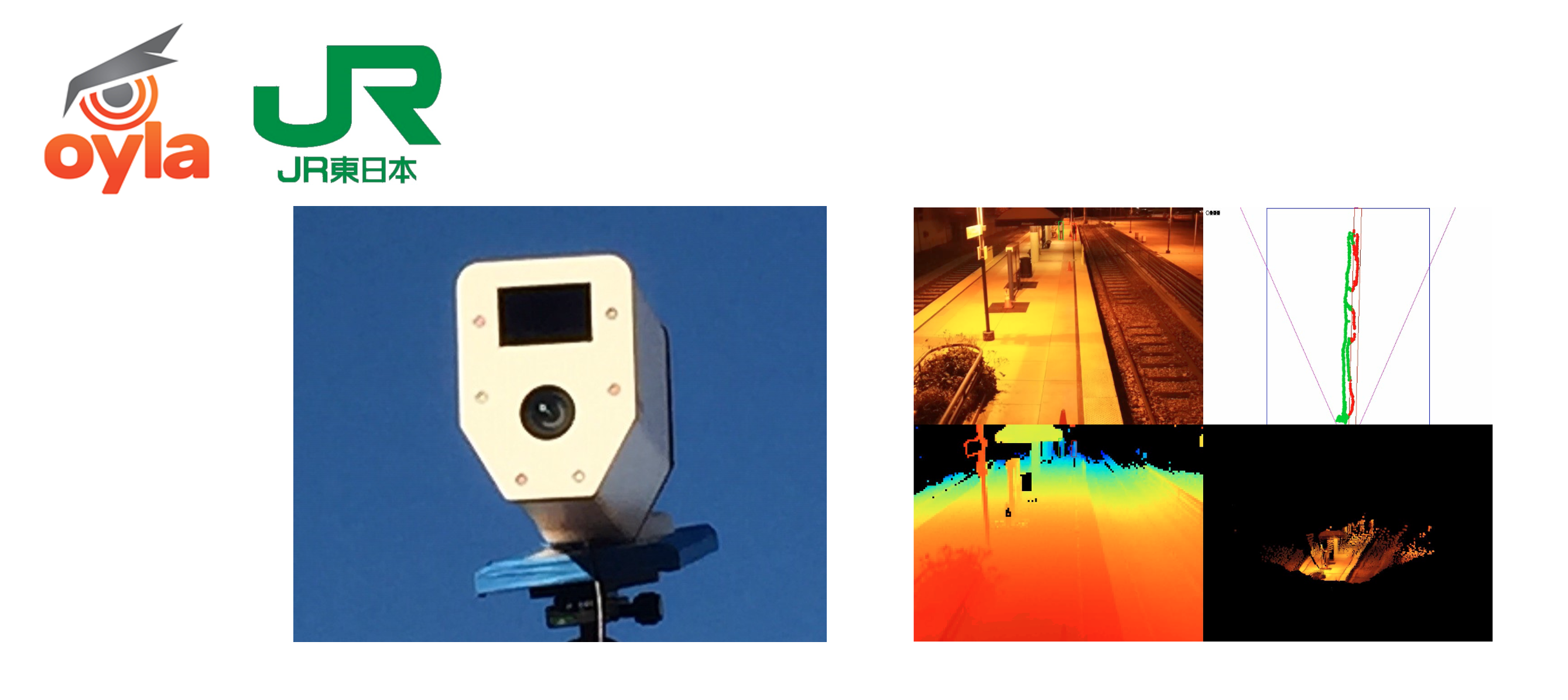 ● 概要: 東日本旅客鉄道は、3D LiDARとカメラのセンサフュージョンソリューションを提供するOylaとともに、鉄道駅ホームの安全性向上に取り組んでいます。3D空間において人や物体の位置を特定するOylaのソリューションを活用して、利用者が安心して駅ホームを利用できる仕組みを目指しています。悪条件のなかでも対象物を高精度で特定できるセンサフュージョン技術により、昼夜を問わず駅ホームの危険区域への侵入・線路上への転落を監視し、警告を発することをねらいます。2021年9月〜2022年2月にはシリコンバレーにて実証実験を行うなど、継続的に技術検証が行われております。