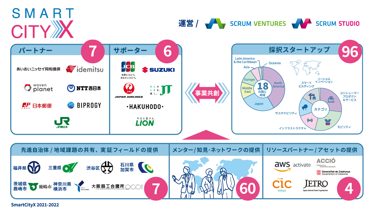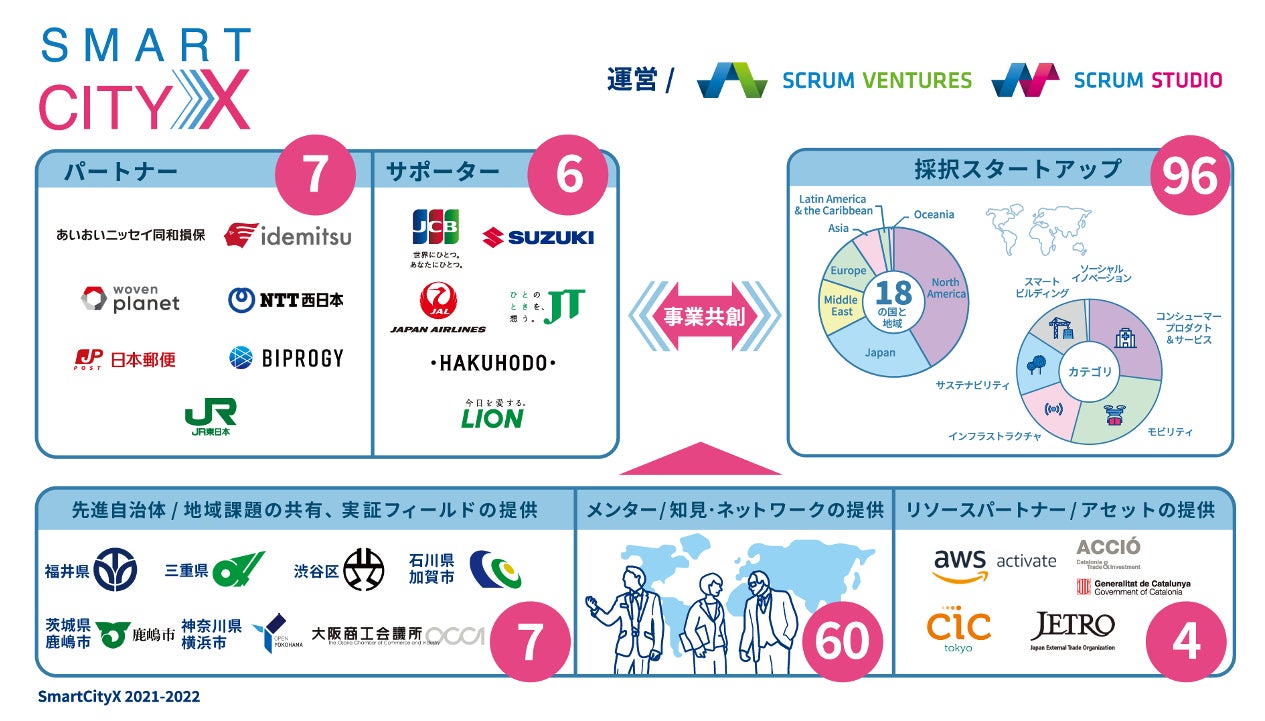 ● プロジェクト概要: 「SmartCityX」は、各業界をリードする大企業パートナーが、世界中の最先端のスタートアップとともに「未来のまち」を共創するグローバル・オープンイノベーション・プログラムです。