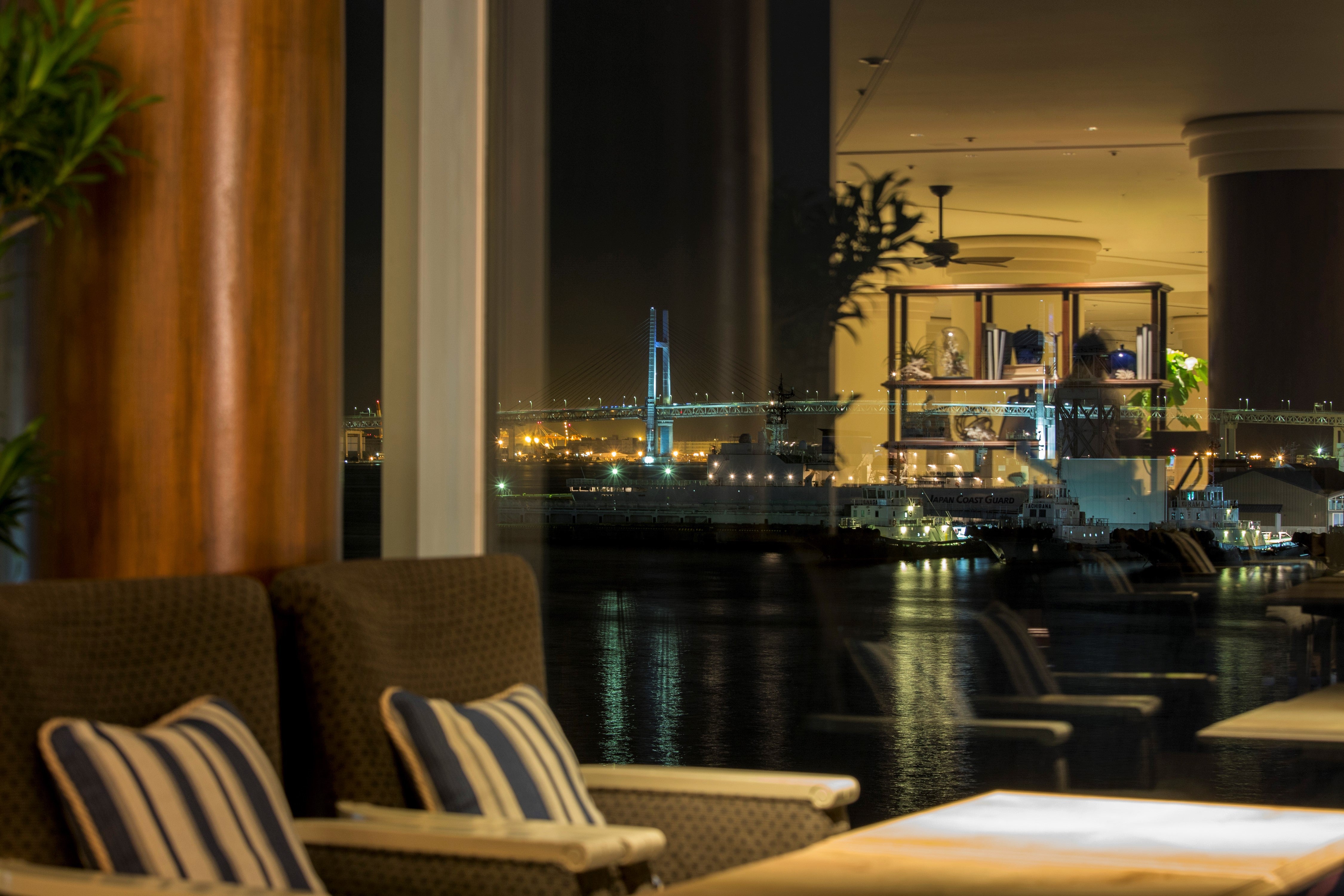 横浜ベイブリッジや大さん橋をはじめ、横浜港を一望する開放感あふれるロビーラウンジ。海辺のリゾートをイメージした空間は、まるで豪華客船で旅をしているような寛ぎのひとときを演出します。刻一刻と表情を変える海の景色とともに、優雅なひとときをお過ごしいただけます。