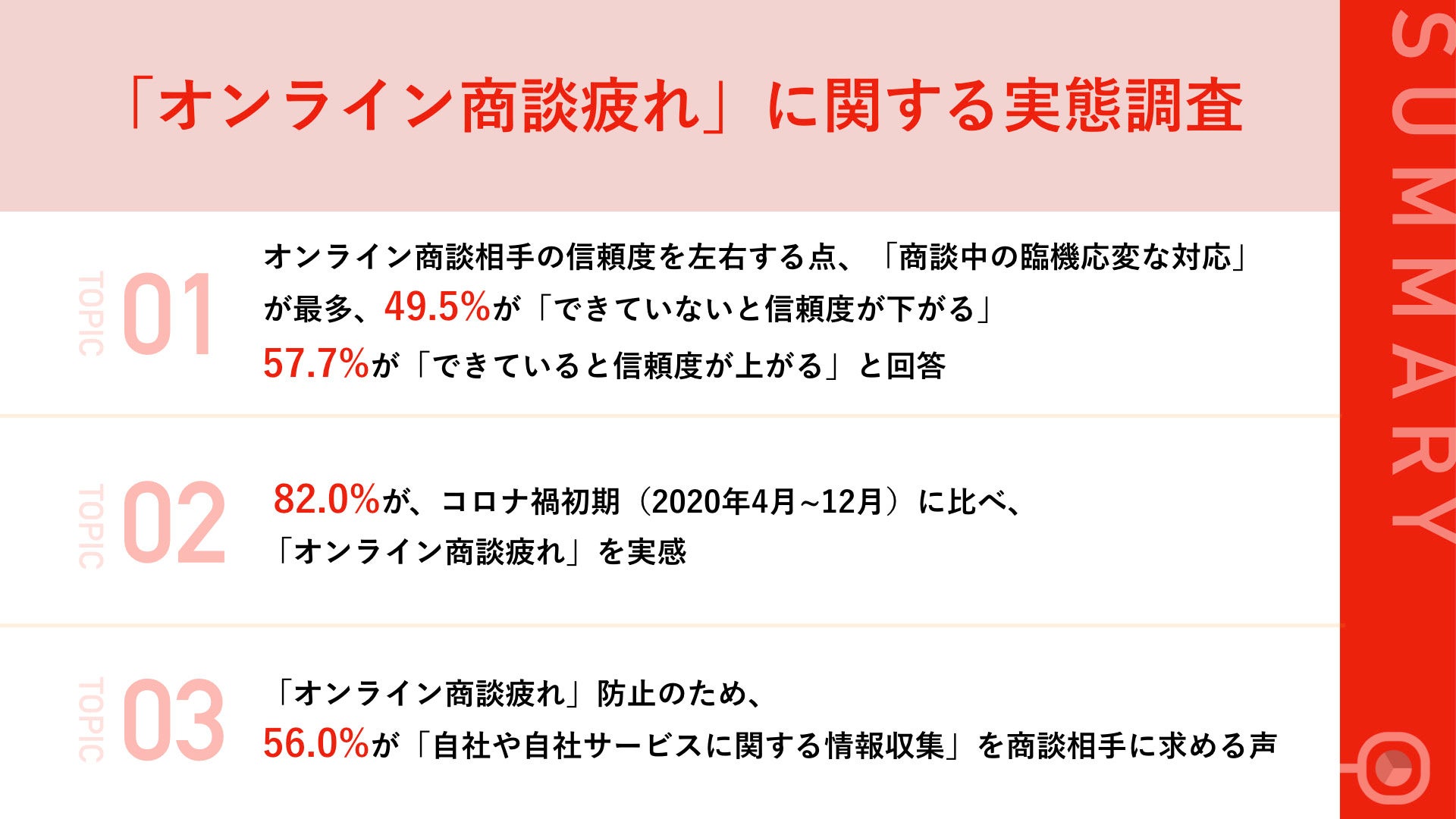 ~8割以上がコロナ禍初期と比べ「オンライン商談疲れ」を実感し、「商談時間の使い方や態度」をシビアに見るようになったと回答~