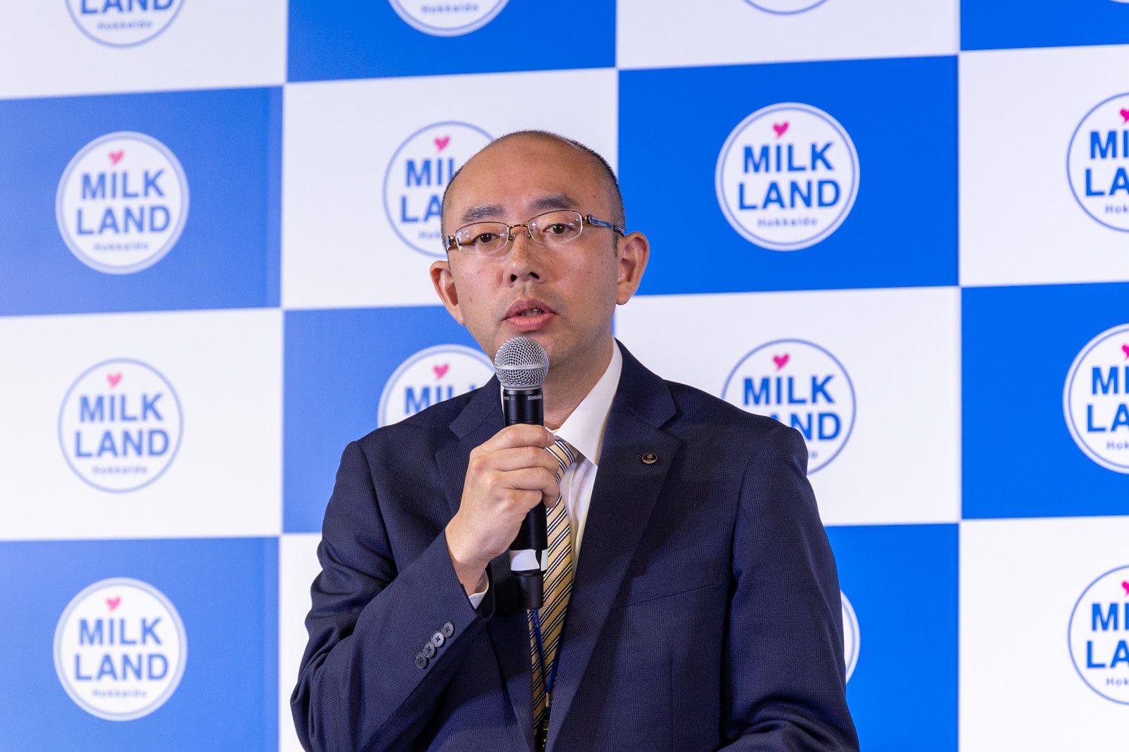 イベント冒頭では、ホクレン農業協同組合連合会 酪農畜産事業本部 酪農部 生乳共販課 黒政聰が登壇し、