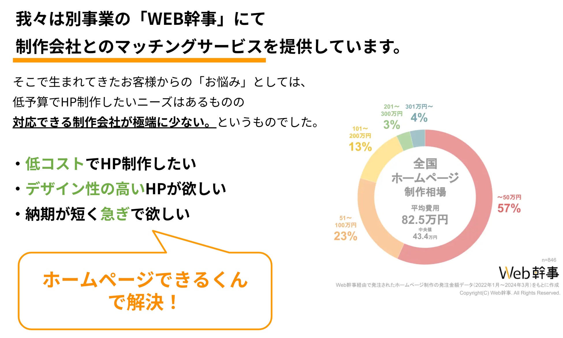 低価格帯のホームページ制作は、明確に需要と供給のバランスが不一致な課題がありました。