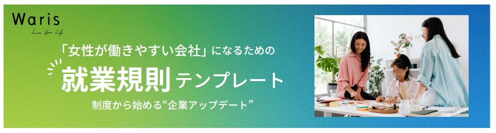 女性の多様な働き方への支援を通じて、すべての人の自分らしい人生を応援する人材サービス企業株式会社Waris(所在地:東京都千代田区、共同代表:米倉史夏、田中美和、河京子、以下Waris)は、2025年6月24日より、「女性が働きやすい会社」になるための就業規則テンプレートの無料提供を開始いたします。