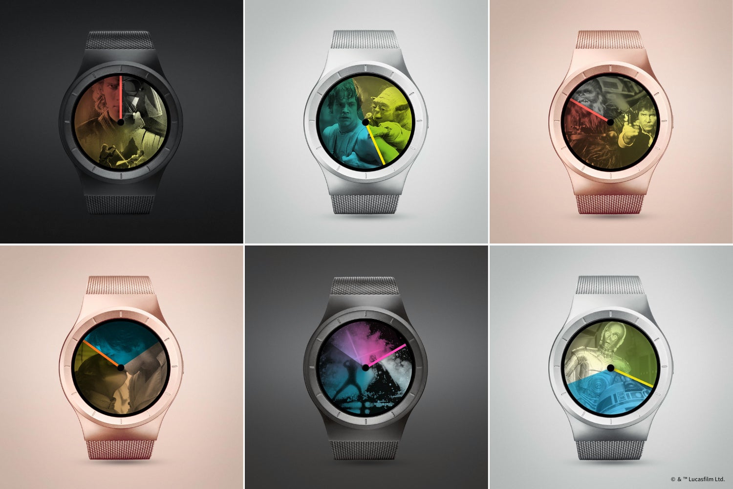 コレクションモデルのベースは、ZIIIROの中でも人気のCELESTEシリーズ。オーロラを思い起こす配色を再現した魅惑的なデザインが特徴的で、2枚のグラデーションディスクの色の変化によって時刻を表示する。そこに、「スター・ウォーズ」の壮大なストーリー性、ファンを魅了し続けるキャラクター達の名シーンを、2枚のグラデーションディスクを駆使し表現した。