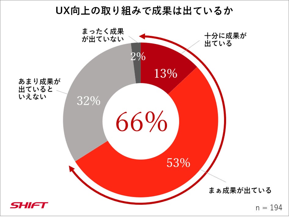 - UX向上の取り組みで成果は出ているか:66%が「成果が出ている」と回答